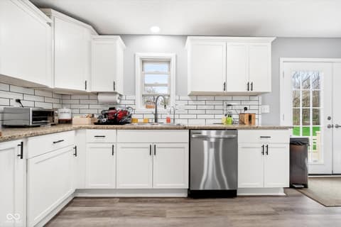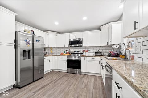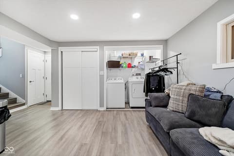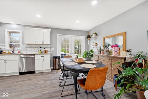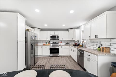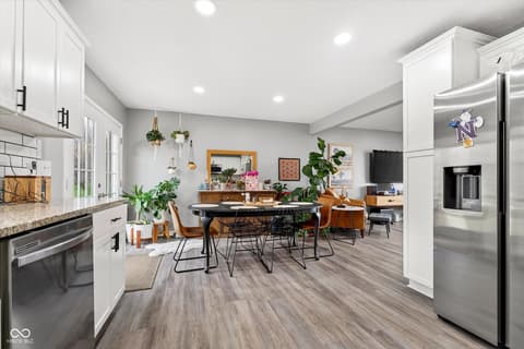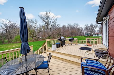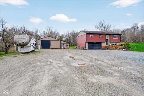 Discover the perfect blend of rural tranquility and modern convenience on this sprawling 1.10-acre property. This unique estate offers an expansive landscape featuring mature trees and a versatile outbuilding with utilities, ideal for hobbies or significant storage needs. The residence features a multi-level architectural design with a full, finished basement, providing approximately 1,766 square feet of total living space. The interior is highlighted by a seamless flow of vinyl plank flooring throughout the main and lower levels. An updated kitchen serves as the heart of the home, equipped with energy-efficient stainless steel appliances, a micro-hood, a dishwasher, and a garbage disposal. The kitchen integrates with a dining combo and breakfast room, creating a centralized area for meal preparation and gathering. The home is configured with four bedrooms and two full bathrooms. The primary suite, located on the main level, includes a private bathroom with a shower stall. Three additional bedrooms are distributed across the levels, including one in the finished basement. The lower level also hosts a spacious great room and a laundry area with full connections. Outdoor living is enhanced by multiple decks and a dedicated patio area, perfect for enjoying the extensive lawn. Parking and additional storage are provided by a two-car attached garage. Located within the Westfield-Washington school district, this non-subdivision lot offers a private, low-maintenance lifestyle without the restrictions of a homeowner's association. Possession is negotiable.