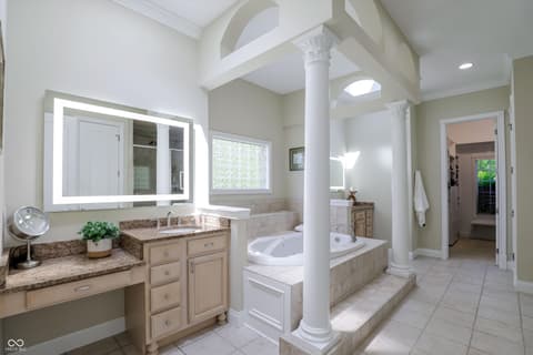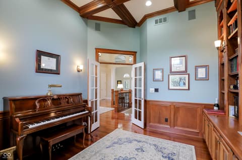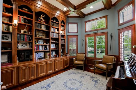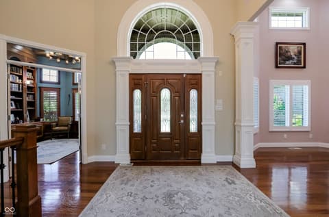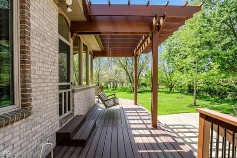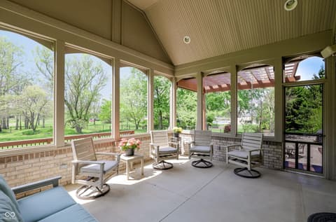 Experience unparalleled craftsmanship in this all-brick estate, perfectly positioned on a private 1.36-acre sanctuary within Zionsville's prestigious Willow Ridge. Custom-built by the builder for personal use, this expansive residence radiates quality and thoughtful design. The main level is bathed in natural light and features a rare dual-primary suite layout on opposite wings for ultimate privacy. The 2nd office on the main level could easily function as a 6th bedroom or nursery. The inviting gourmet kitchen and breakfast room lead right out to the peaceful screened in porch to enjoy more of the natural surrounds. Soaring ceilings frame serene backyard views, while the remodeled lower level-boasting 10' ceilings, three bedrooms, a wine cellar, and a full bar-feels like a natural extension of the home. Outdoor living is redefined with the screened porch, wrap-around deck, and ample space for a pool. Complete with a 4-car garage and full-house generator, this lightly-lived-in gem offers the pinnacle of quiet, main-level luxury.