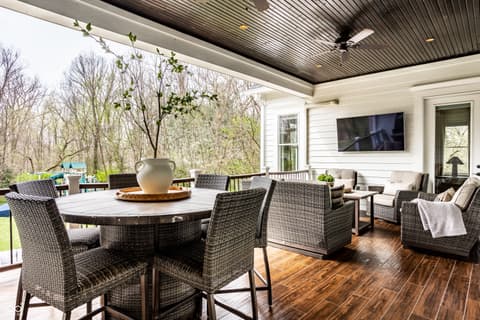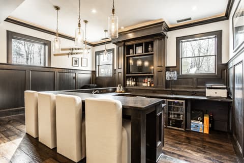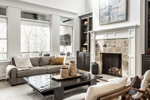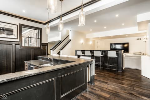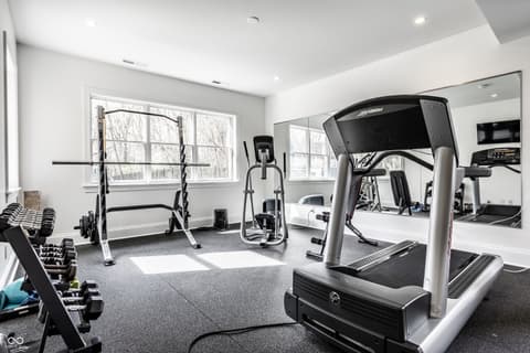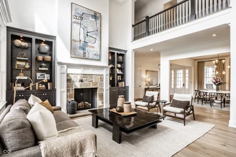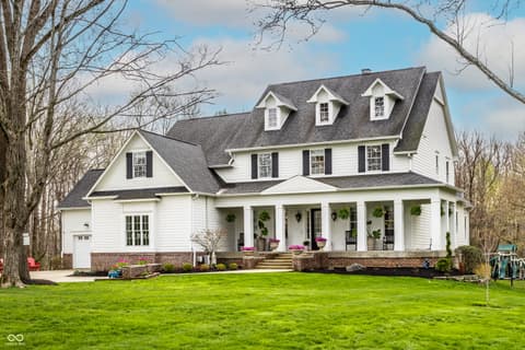 Known as "The White House on Main Street," this iconic and central Carmel estate offers 7,500 square feet of impeccably updated living space on nearly 2 breathtaking acres! This 5-bed, 5.5 bath efficient floor plan blends charm with luxury, featuring a classic wrap-around porch, a walkout basement, with a rare indoor sports court-perfect for year-round enjoyment. Inside, you'll love the flexible floor plan and high-end finishes throughout. The dramatic two-story family room with fireplace flows seamlessly into a gourmet kitchen and hearth room with vaulted ceilings and an additional fireplace ideal for both entertaining and everyday living. A versatile flex space just off the kitchen can be used as a second living area or office. The main-level primary suite is a true retreat, complete with a spa-like bath and a show stopper walk-in closet. Upstairs, you'll find four spacious bedrooms, each with access to full baths, plus a second laundry room for added ease and an additional flex space. Don't miss the additional room through the bunk room closet that can be used as a nursery or craft room. The walkout lower level is built for entertaining, offering a theater area, sunken bar, exercise room, and a well-designed bathroom and locker space. Recent updates include new flooring, countertops, a Wolf range, California Closets, window treatments, and designer lighting, making this home move-in ready. See full list of updates in Supplements! All of this in a prime location-just minutes from everything Carmel has to offer: top-rated schools, shopping, dining, and more. This is a rare opportunity you don't want to miss!