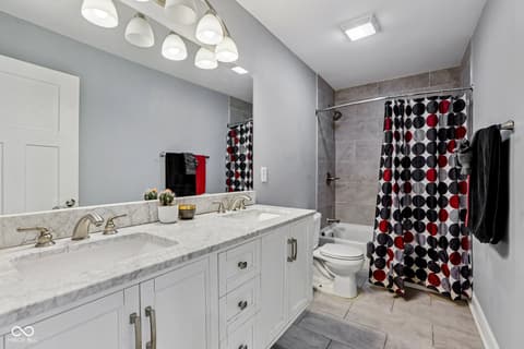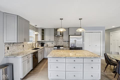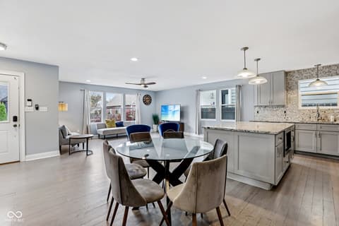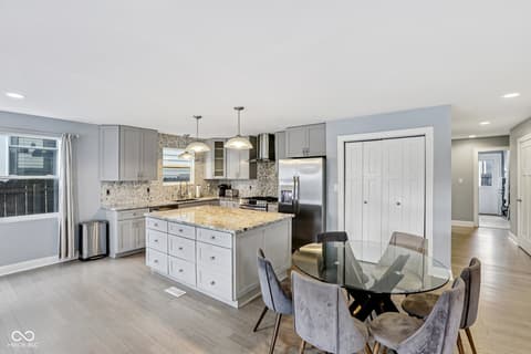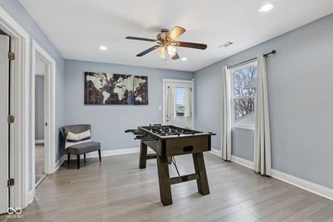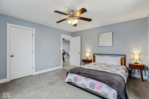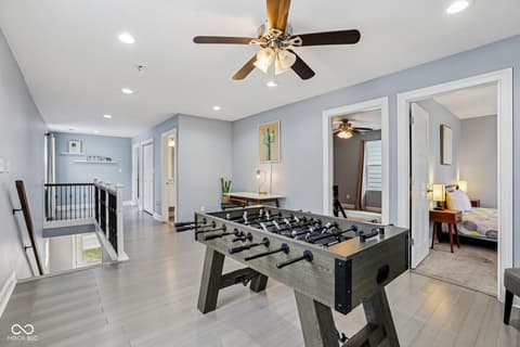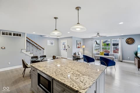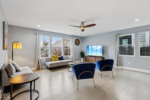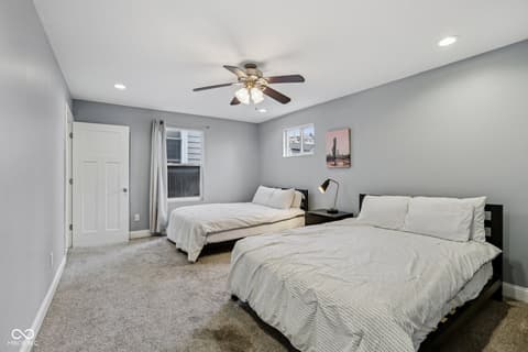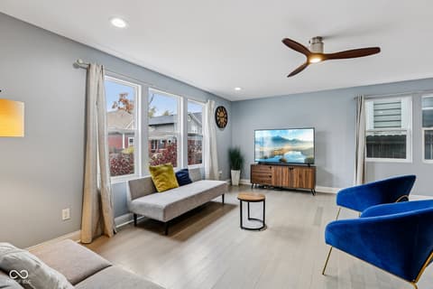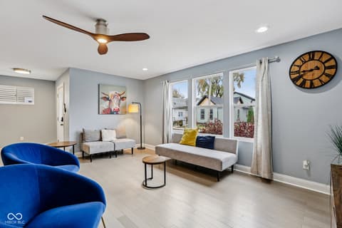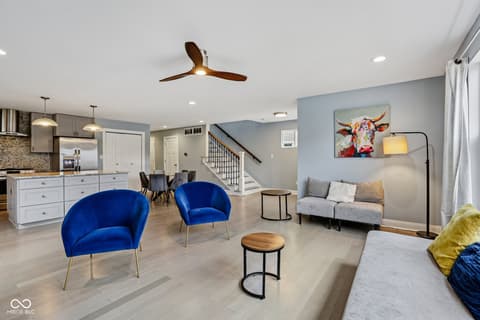 This spectacular 4-bedroom home, completely rebuilt in 2018/2019, offers a rare combination of luxury, space, and a prime location in the heart of Indianapolis's vibrant Bates-Hendricks neighborhood. A unique offering with two full Primary Suites, each featuring a private full bath and a spacious walk-in closet-one conveniently located on the main level and the second upstairs-perfect for multi-generational living or an elite guest experience. The main level boasts a sprawling, open-concept floor plan, ideal for seamless entertaining and modern daily life. Total of 4 bedrooms, 3 full baths, and 1 half bath, ensuring comfort and privacy for everyone. A massive upstairs loft provides flexible space for a home office, media room, or play area. Enjoy private outdoor spaces with a fully fenced-in backyard featuring a large deck, plus two distinct balconies upstairs-one accessible from the Primary Suite and the second off the versatile loft. Never worry about parking with the attached two-car garage. This home perfectly blends modern design with functional luxury, placing you steps away from the best local restaurants, shops, and parks. Don't miss the chance to own this like-new gem in one of Indy's hottest areas! Home is currently being used as an Airbnb and could be a great investment with all furniture staying and in place.