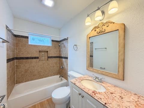 Welcome to a truly unique property that offers space, flexibility, and exceptional value-all in one! This beautifully updated 4-bedroom, 2.5-bath main residence is complemented by a standout feature you won't often find: a fully equipped 1-bedroom guest house. The main home offers a thoughtful layout with generous living spaces, including a large great room that's perfect for entertaining or relaxing with family. A dedicated office provides the ideal work-from-home setup, while the spacious bedrooms ensure comfort for everyone. Step outside to enjoy a beautifully designed patio-perfect for hosting gatherings, summer barbecues, or simply unwinding in your own private outdoor retreat. What truly sets this property apart is the detached guest house. Whether you're accommodating extended family, hosting long-term guests, creating a private home office or studio, or even exploring rental income potential, this separate living space offers unmatched versatility and value. Complete with its own bedroom, it provides privacy and independence that's hard to come by. Opportunities like this are rare-don't miss your chance to own a property that combines functionality, comfort, and incredible flexibility all in one.