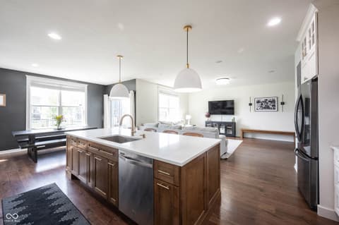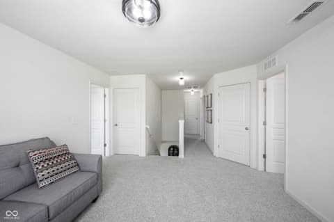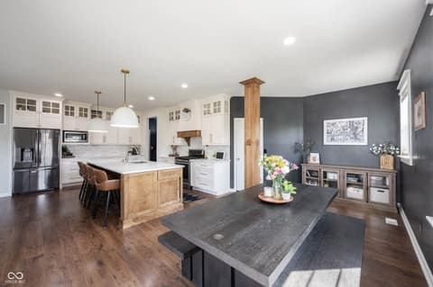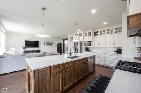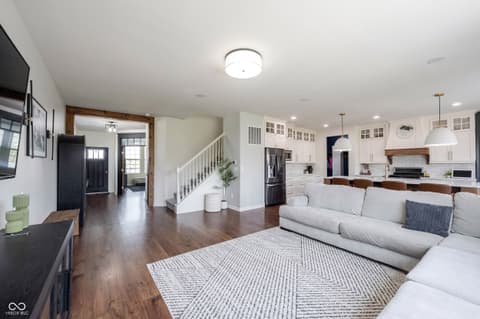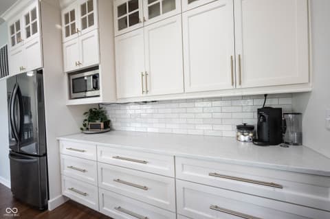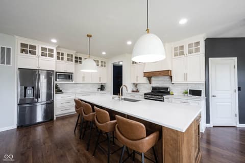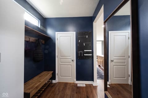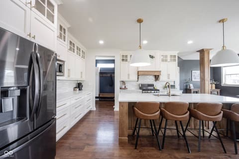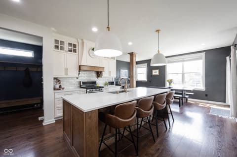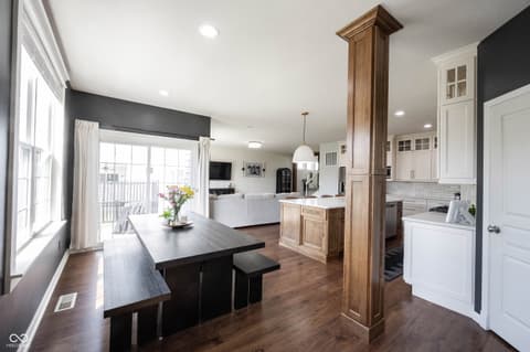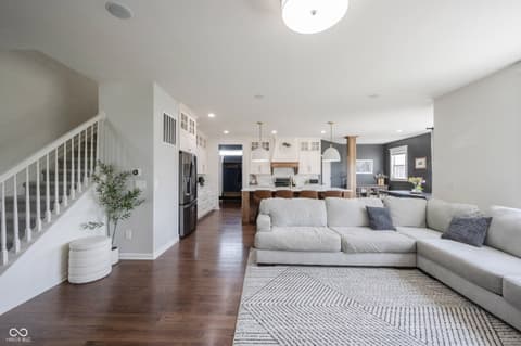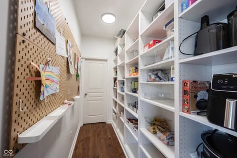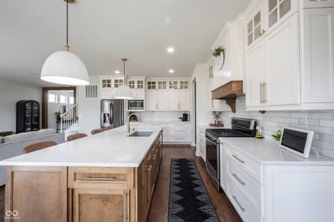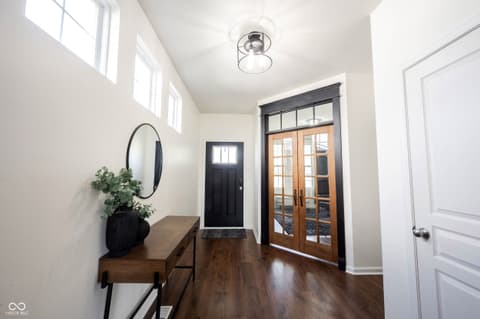 Thoughtfully upgraded 4-bedroom on a quiet Andover cul-de-sac, every detail considered. From the custom kitchen to the fully fenced backyard, the sellers have poured care into every corner of this 4-bed, 2.5-bath home in Westfield. A full basement, 3-car garage, and dedicated main-floor office give you room to live, work, and grow. The 2019 kitchen remodel is the showstopper: 3/4" solid maple cabinets in a crisp white finish, a birch island with quartz countertops throughout, and clever touches you didn't know you needed, a pull-out pet food cabinet, built-in pet watering station, hidden toe-kick drawers, lit transom cabinets on smart dimmers, and soft-close everything. Stainless appliances include a gas range with a vent hood that actually vents outside. The walk-through pantry is the kind of idea that makes you wonder why every home doesn't have one. Main-floor thoughtfulness continues with two drop zones, one at the front door, one off the garage, each with benches and hooks for coats and backpacks. The private office features French doors and transom windows for natural light, and the entire home is wired with CAT6 for rock-solid connectivity. Upstairs you'll find all four bedrooms, including a primary suite with a walk-in closet, double sinks, and a full shower stall. Laundry is conveniently located on the bedroom level. The full basement is a blank canvas with 9' ceilings, two egress windows, and plumbing roughed in for a future full bath. Motion-activated LED strip lighting and shatter-resistant mirrors make it ready to become a home gym, studio, or finished living space on your timeline. The 3-car garage goes beyond parking with hanging ceiling storage shelves, plenty of room for vehicles, tools, and projects. Outside, a 6' aluminum fence wraps the rear yard, and the cul-de-sac lot backs up to neighborhood walking trails, a park, and a playground (HOA $650/year). Westfield-Washington Schools, minutes to everything Westfield and Carmel. Welcome Home!