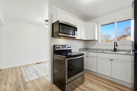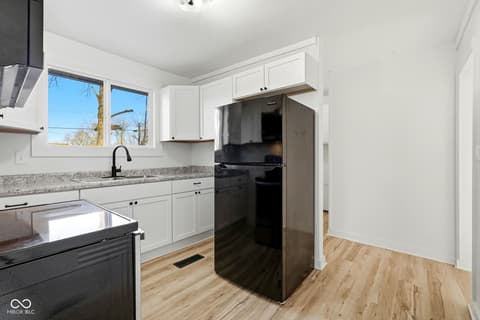 Completely renovated from top to bottom and truly move-in ready! This beautifully updated 3-bedroom, 1.5-bath ranch offers modern upgrades and worry-free living throughout. Nearly everything in this home is brand new, including a new roof, new siding, new gutters and soffits, new windows, new AC system, new water heater, all new plumbing, updated electrical with new outlets throughout, new flooring throughout, fresh paint throughout, new interior doors, and fully updated bathrooms. The fully updated kitchen features brand new cabinets, new countertops, new faucet, a new microwave, new refrigerator, garbage disposal, and modern finishes that create a bright and functional space for everyday living and entertaining. The bathrooms have also been refreshed with new vanities and all new faucets, giving the home a clean and updated feel throughout. Step outside to enjoy fresh landscaping and a newly seeded lawn, along with a large backyard that includes a huge freshly painted barn with brand new doors, perfect for storage, a workshop, hobbies, or additional space for lawn equipment. Located on a very quiet street with great neighbors, this home also offers convenient access to shopping, dining, and everyday amenities just minutes from Broad Ripple and downtown Indianapolis. All the work has already been done - simply move in and enjoy!