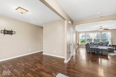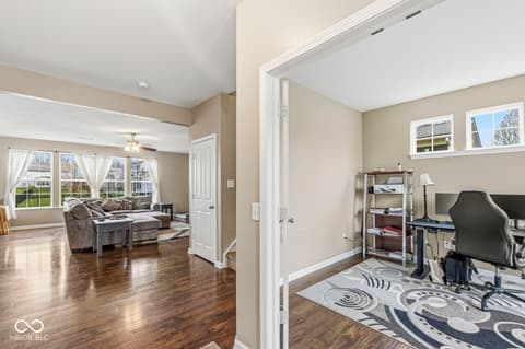 Less than 9 years old and priced well below what you'd pay to build it today...Very solid place with all the right upgrades already done. Kitchen's set up how you want it, solid surface tops, big island, newer gas appliances and it opens right into the living space so it actually feels connected. You've got a real office on the main floor with large windows for light, French doors for privacy (not just a corner), plus a separate formal dining room or additional sitting space to set up however you want. Coming in from the garage and right next to the hall tree is a massive laundry room with a door for separation, the washer/dryer, plus water softener and filtration system which is stuff people don't think about until they need it. Upstairs, you're greeted with a large loft for extra hangout space, 3 good-sized guest bedrooms with big closets, and a primary suite with tray ceilings, upgraded bath with walk-in shower, and a huge walk-in closet. Backyard is fully fenced and backs right up to a walking trail which perfect for anyone who just wants to take a morning or evening walk to stay active. Garage has a 6' side extension too, so you've actually got legit storage space. Great location that's close to Grand Park, everything Westfield has to offer, and within 10 minutes to Noblesville and Carmel too. If you're comparing this to new construction...you're saving money and getting more immediately.