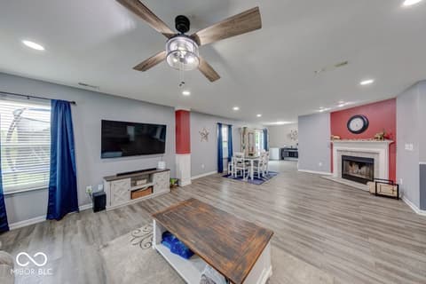 Welcome to this beautifully updated 4-bedroom, could easily be transformed into a 5 bedroom, 3-bath home in the highly sought-after Franklin Township community. Designed with both comfort and style in mind, this move-in-ready residence features a spacious open floor plan, fresh interior paint, and upgraded lighting throughout, creating a bright and inviting atmosphere. The expansive main living area centers around a cozy wood-burning fireplace and flows effortlessly into the dining space and kitchen-perfect for entertaining and everyday living. The kitchen is equipped with a brand-new dishwasher, and durable vinyl plank flooring runs throughout the home, offering a sleek, modern look with easy maintenance. All appliances are included in the kitchen, deep freeze in garage and electric fireplace in primary bedroom excluded. Each of the four generously sized bedrooms includes its own walk-in closet, while the primary suite stands out with dual walk-in closets, providing exceptional storage and convenience. A dedicated laundry room with built-in shelving adds to the home's functional appeal. Step outside to enjoy the newly landscaped yard and spacious deck-ideal for relaxing or hosting gatherings. The included trampoline and swing set add extra value and fun to the outdoor space. An attached garage with premium lighting completes the home's thoughtful upgrades. This is a rare opportunity to own a stylish, well-appointed home in one of the area's most desirable neighborhoods.