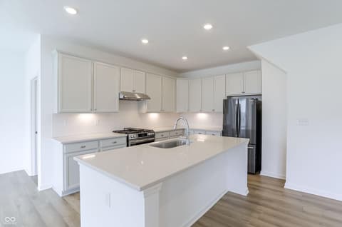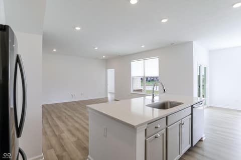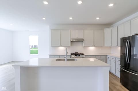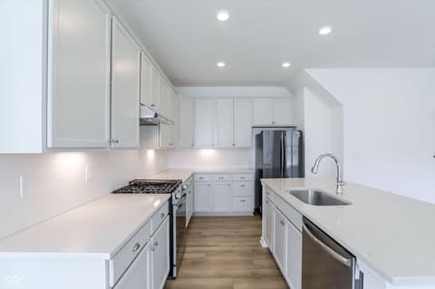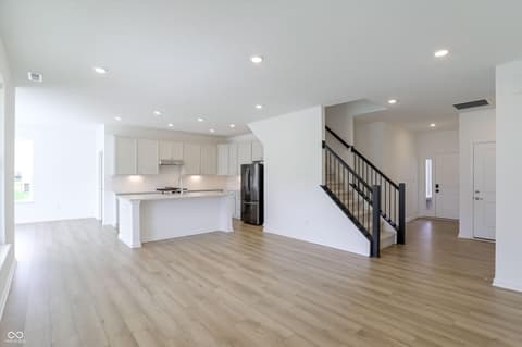 Welcome to Monon Corner. This stunning home perfectly blends high-end luxury with cutting-edge sustainability. Spanning 2,173 square feet across two levels, this residence features 4 spacious bedrooms and 3 full bathrooms, offering a versatile layout designed for modern living. The heart of the home is a gourmet kitchen, a chef's dream, anchored by a quartz island and equipped with premium appliances. The open-concept main floor features durable luxury vinyl plank flooring and high ceilings, creating an inviting ambiance for gatherings. The primary suite and two additional bedrooms are conveniently located on the main level, while the upper floor offers a private fourth bedroom and a loft-perfect for a home office, media room, or guest retreat. Set on a manicured lot in Westfield, residents enjoy a robust suite of amenities including a sparkling pool, dog park, and playground. For added convenience, lawn care and snow removal are included in the HOA dues. The lifestyle here centers on the outdoors, offering direct access to the Monon Trail for cycling and walking. Unbeatable Location.