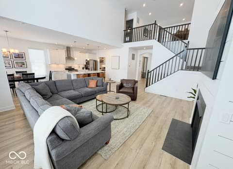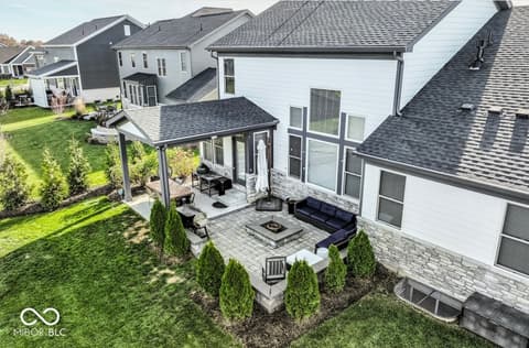 Welcome to this beautifully appointed 4 bedroom (Main Level Primary), 3.5 bath residence nestled in the prestigious Chatham Hills Country Club Community. This stunning home offers a thoughtfully designed open concept floorplan ideal for both everyday living and entertaining. The two-story family room is flooded with natural light, creating a warm and inviting atmosphere throughout the heart of the home. At the center of it all is the gourmet kitchen, complete with quartz countertops, quality finishes, and seamless flow into the living and dining areas. A stylish coffee and wine bar on the main level adds a touch of everyday luxury and convenience. For those who work from home, the private office with brand-new custom doors offers both functionality and sophistication. The expansive main level primary suite serves as a private retreat, featuring a garden tub, separate shower, double sinks with quartz countertops and custom closets. Upstairs you will find a loft, two bedrooms with walk-in closets and a bathroom with double sinks and granite countertops. The finished basement expands your living space with a full bar designed for entertaining, a large guest bedroom, storage room and a dedicated home gym, making it perfect for hosting friends, family, or extended stays. Step outside to enjoy outdoor living at its best with a covered patio and a custom stone patio featuring a built-in fire pit, ideal for relaxing evenings or gathering with guests' year round. Don't miss this opportunity to live the resort lifestyle in Chatham Hills.