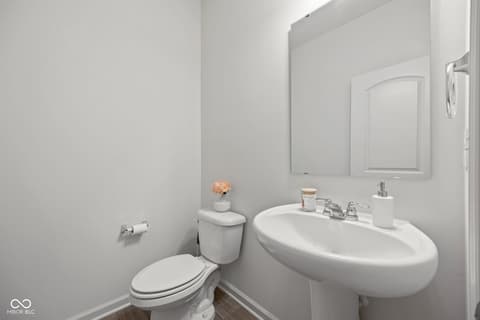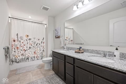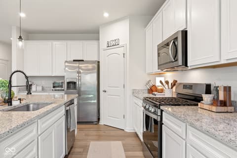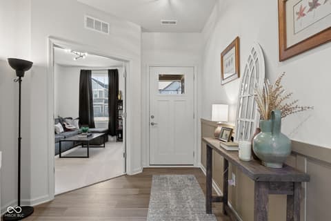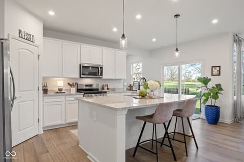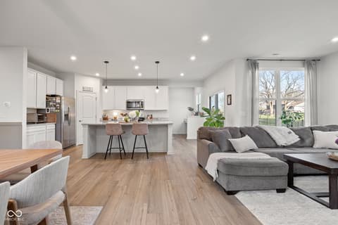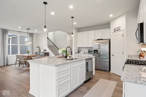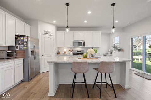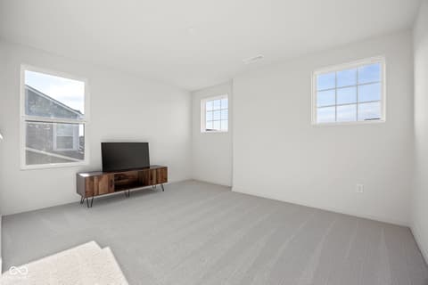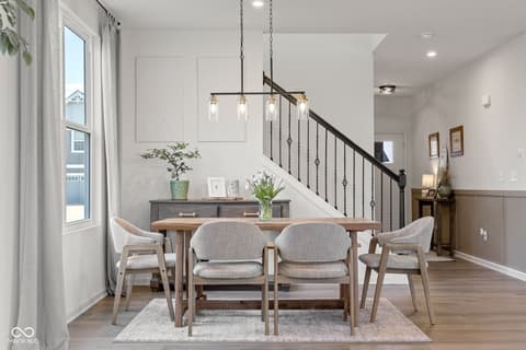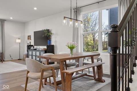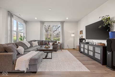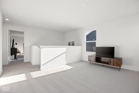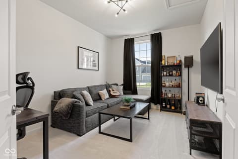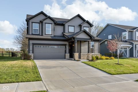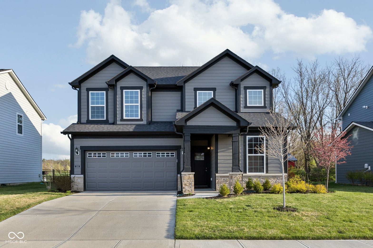 With a coveted tree-lined backyard in the heart of Hamilton County, this dark beauty is better than new! The main floor features light LVP flooring - one of today's most sought after finishes - and an open layout perfect for a cozy night in or entertaining guests. A versatile bonus room at the front of the house creates the ideal space for a home office, playroom or flex space. The upgraded chef's kitchen is a showstopper with its oversized center island, quartz countertops, corner pantry & tall cabinetry. Expansive windows fill the home with natural light and offer beautiful views of the mature trees lining the backyard. Take in the beauty of nature & abundant natural light from inside with all of the windows. Upstairs, you'll find a loft space, 2 additional bedrooms, the convenient second floor laundry room & a generously sized primary suite with room to rest & retreat. Garage is equipped with an EV charger. Ideally located near Carmel, Westfield & Noblesville, this home offers unbeatable access to top shopping, dining, parks & everyday conveniences. A short walk to Noble Crossing Elementary School and quick access to US-31 or SR 32, making commuting a breeze. Experience the charm of nearby neighborhoods where golf carts are a common sight - whether heading to dinner, grabbing groceries, enjoying ice cream or attending summer concerts at Dillon Park. This move-in ready home has it all - don't miss it!