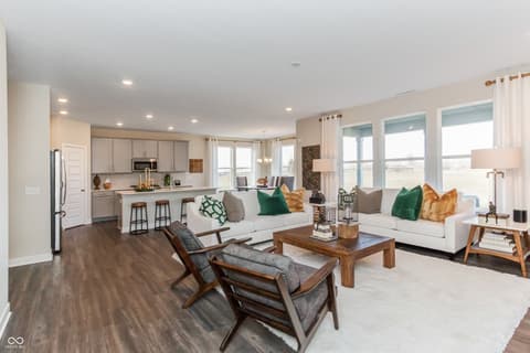 The Summerton Ranch Collection offers brand-new single-family homes for sale in the city of McCordsville, just named one of Indiana's best places to live! Future community will include a pool, pool house, ponds and playgrounds for everyone to enjoy. The ranch collection also includes lawn maintenance, snow removal and offers spacious homesites. Don't miss nearby recreational activities like kayaking and hiking at Geist Waterfront Park, or boating at Geist Reservoir. The Wilmington is an elegant ranch plan with an open concept, 9' ceilings and an abundance of light and windows. Large Center Island with sink and seating and large walk-in pantry is included in the kitchen. Add the locker-style Family Organizers and help tame the clutter. Just outside is a covered porch for outdoor living. The 3 car garage has space for any seasonal storage, a woodworking hobby or simply room for bikes and other motorsports toys. *Photos/Tour of model may show features not selected in home.