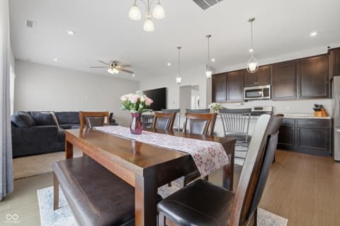 Welcome home to this beautifully maintained, nearly-new property in the heart of McCordsville! Built in 2021, this stunning 4-bedroom, 2.5-bath home offers the perfect blend of modern design and everyday comfort. Step inside to find a bright and inviting main level featuring brand new carpet and fresh paint, creating a clean, move-in-ready feel from the moment you walk through the door. The open-concept living room flows seamlessly into the kitchen and dining area, making it ideal for both entertaining and everyday living. The kitchen is equipped with sleek stainless steel appliances, adding both style and functionality to the space. Upstairs, you'll find four generously sized bedrooms, including a relaxing primary suite designed for comfort and privacy. With 2.5 bathrooms, there's plenty of space for everyone to get ready with ease. Enjoy additional features like a fully drywalled and insulated garage that's perfect for storage, hobbies, or year-round comfort. Located in the desirable Woodhaven community, residents enjoy access to fantastic amenities including a community pool, basketball courts, and newly renovated playground. You'll have peace of mind with a transferable 10-year structural warranty through Fischer Homes, offering added value and confidence in your investment. Situated in the highly sought-after Mt. Vernon School District, this home combines quality construction, thoughtful updates, and a prime location that make it a must-see! Schedule your showing today and come experience all this beautiful home has to offer!