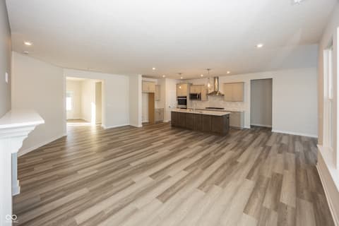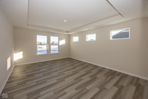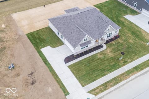 This thoughtfully crafted ranch home offers the ideal combination of comfort, functionality, and modern style. Built on a durable slab foundation, the open-concept design seamlessly connects the kitchen, dining area, and family room, creating a welcoming environment for both daily living and entertaining. The primary suite serves as a private retreat with a tray ceiling and spa-inspired bath, while a Jack-and-Jill bath conveniently adjoins the secondary bedrooms. A dedicated home office provides flexibility for remote work or study, and the outdoor living space extends your home's entertaining potential-perfect for quiet evenings or lively gatherings. Designed with today's lifestyle in mind, this home delivers timeless appeal in one of McCordsville's most desirable settings.