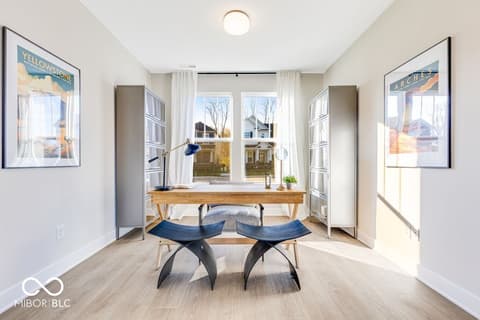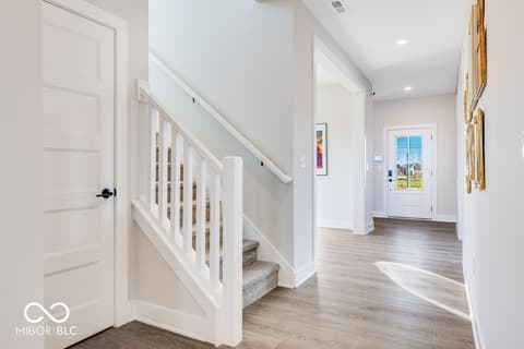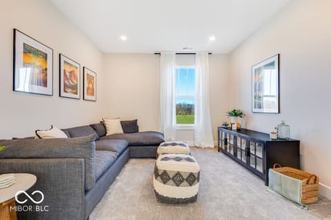 What's Special: Flex Room | Understairs Storage | Covered Patio | Close to Trails | Pond View. New Construction - Ready Now! Built by Taylor Morrison, America's Most Trusted Home Builder. Welcome to the Soho at 5647 Arcade Boulevard in Colonnade! This beautiful new home is designed for modern living with thoughtful touches throughout. Start your day on the covered porch, then step inside to a welcoming foyer with a convenient powder room, flex space, and garage entry. The open-concept main level stuns with Revwood flooring throughout, a sunny great room, and a stylish kitchen featuring stainless steel appliances, 42" upper cabinets, quartz countertops, and a center island perfect for meal prep and casual dining. Sliding glass doors lead to a covered patio for easy indoor-outdoor living. Upstairs, you'll find three secondary bedrooms, two with walk-in closets, a full bath, and a laundry room. The luxurious primary suite offers a spa-like bath and a roomy walk-in closet for your private retreat. Discover Colonnade in McCordsville, one of Indiana's most desirable places to live! Enjoy peaceful ponds, walking trails, and open green spaces right outside your door. Plus, the upcoming McCord Square Downtown District will feature an outdoor amphitheater for concerts and shows, adding even more excitement to the area. With its blend of natural beauty and vibrant amenities, Colonnade is the perfect place to call home. Additional Highlights Include: Upstairs bedroom in place of loft, shower with a bench in the primary bathroom, and water softener rough-in located under the stairs. Photos are for representative purposes only. MLS#22084979
