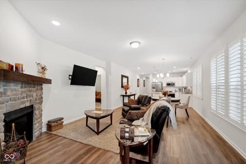 Experience modern comfort in this stunning David Weekley home. Built in 2023, this residence showcases the award-winning craftsmanship and "LifeDesign" approach that David Weekley Homes is known for, offering a perfect blend of style and functional living. This meticulously maintained home features 3 spacious bedrooms and 2 full bathrooms. The heart of the home is an inviting, light-filled living space centered around a cozy fireplace. Designed with EnergySaverTM technology, the property ensures year-round comfort through high-end efficiency, complemented by a convenient attached garage, covered patio and durable masonry construction. The location is a standout feature, nestled in a vibrant, up-and-coming area of Fortville that balances small-town charm with modern amenities. Outdoor enthusiasts will appreciate being near Memorial Park, while local culture is just a short stroll away from the vibrant shops and local dining of Main Street. With its recent construction and prime location, this David Weekley home represents a fantastic turnkey opportunity in one of Indiana's most charming growing communities.