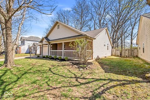 Discover this beautifully updated and well maintained 3-bedroom, 2-bath ranch offering an open, split-bedroom floor plan and exceptional privacy. From the moment you arrive, you'll appreciate the inviting covered front porch and professionally landscaped setting. Inside, the home features a bright and spacious great room with a vaulted ceiling and cozy fireplace, flowing seamlessly into a large eat-in kitchen complete with center island and all appliances included. The private primary suite offers a relaxing retreat with a walk-in closet and updated bath featuring a garden tub, quartz-topped vanity, new sink, faucet, mirror, and hardware. Practicality is enhanced by a dedicated laundry room, simplifying daily routines, while the spacious walk-in closet provides abundant storage. Recent updates throughout the home include new luxury vinyl plank and carpet flooring, fresh interior paint (walls, trim, and ceilings), and all new light fixtures. The kitchen has been thoughtfully refreshed with painted cabinetry, new hardware, quartz countertops, and a new sink and faucet. Both bathrooms have been updated with new toilets and modern accessories. Situated on an expansive 8,320 square foot lot, the exterior offers generous outdoor living space. Enjoy the inviting front porch-perfect for greeting the day-or unwind in the private, fully fenced backyard with mature trees, a relaxing patio, and a convenient storage shed. Ideally located with easy access to Broad Ripple, Downtown, Glendale, Keystone and Nora, this attractive single-family residence offers a harmonious blend of comfort, style, and practical amenities-ready to inspire your ideal living experience.