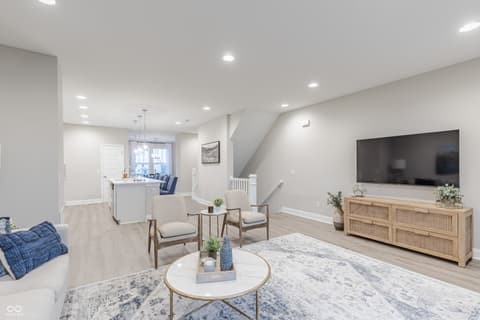 What's Special: 1st Floor Guest Suite | North Facing Patio | Flex Room | Secondary Bedroom with an Attached Bathroom. New Construction - April Completion! Built by Taylor Morrison, America's Most Trusted Home Builder. Welcome to the Midtown at 5752 Arcade Boulevard in Colonnade! This thoughtfully designed three story townhome begins with a two-car garage that opens into a welcoming first floor featuring a comfortable bedroom, a full bathroom and a game room perfect for cozy nights in or casual entertaining. On the second floor, open concept living brings together the great room, a kitchen with a spacious island and a charming dining area, creating an easy flow for daily routines. A flex room makes working from home simple, while a powder room adds extra convenience. Step outside from the great room to a covered deck. The third floor offers a serene primary suite with a walk-in closet and a spa like bathroom designed for relaxation. This level also includes an additional secondary bedroom with a generous walk-in closet, a full bathroom and a convenient laundry room to keep everything within easy reach. Welcome to McCordsville, one of the best places to live in Indiana! Outside, discover a peaceful pond, walking trails and open spaces. Plus, the McCord Square Downtown District is on the way and will feature an outdoor amphitheater for concerts and shows! Additional Highlights Include: covered full front porch, rear covered deck on 2nd floor, glass sliding door out to the covered deck, water softener rough-in located under the stairs on the first floor, gas line in kitchen for future gas range, and water closet in the primary bath. Photos are for representative purposes only. MLS#22093963