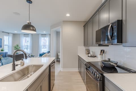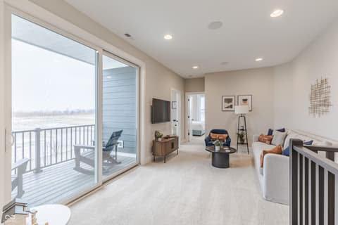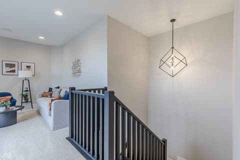 What's Special: Loft | End Unit | Dedicated Home Office | Corner Lot - New Construction - Ready Now! Built by Taylor Morrison, America's Most Trusted Home Builder. Welcome to the Uptown at 5768 Arcade Boulevard in Colonnade! This lovely endunit townhome begins with a welcoming covered front porch that sets a friendly first impression. Inside, the openconcept layout brings together the living room, dining area, and kitchen in one bright, easygoing space. The kitchen features quartz countertops, softclose drawers and doors, stainless steel appliances, a center island, and a walkin pantry. Just beyond the kitchen is a versatile flex space, and a powder room sits near the rear garage entry for everyday convenience. Upstairs, a spacious loft opens to an outdoor covered deck and anchors two secondary bedrooms with walkin closets, a shared full bathroom, and a centrally located laundry room. The primary suite offers an ensuite bath with dual sink vanity, roomy shower, and a large walkin closet. Welcome to McCordsville, one of the best places to live in Indiana! Outside, discover a peaceful pond, walking trails and open spaces. Plus, the McCord Square Downtown District is on the way and will feature an outdoor amphitheater for concerts and shows! Additional Highlights Include: a storage closet added upstairs, water closet in the primary bath, a shower with a shelf in the primary bathroom, 84" vanity in the primary bath, and 60" vanity in the upstairs secondary bath. Photos are for representative purposes only. MLS#22093255