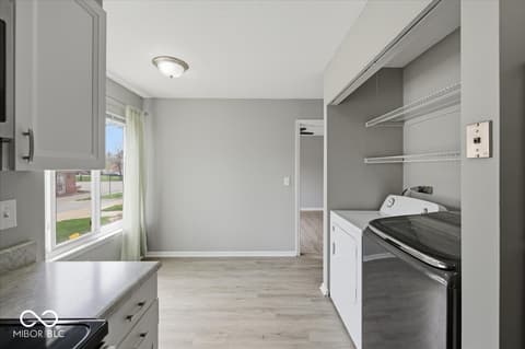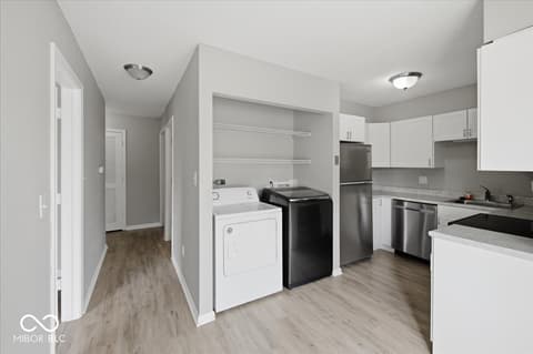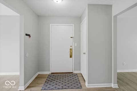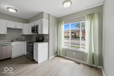 Move right in to this NO STAIRS, first floor one bedroom updated condo. Located in the heart of Carmel this convenient, efficient living and secure location with lobby and parking right out front is ready for you. Enjoy lots of natural sunlight in every room! Fresh, neutral paint and updated vinyl plank thru the home. Whip up a delicious meal in the updated kitchen with barely used stainless steel appliances attached to cozy eat-in breakfast room. Washer and dryer included! Large primary bedroom located in the back features a walk in closet. Dining room doubles as a home office. Secure storage room in the common hall and assigned carport included. Water, sewage and trash are all included in the monthly fee of just $264!