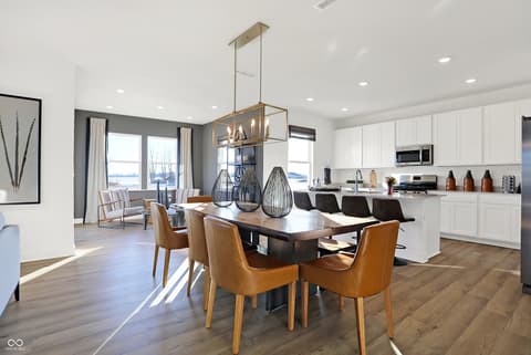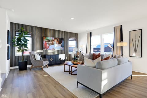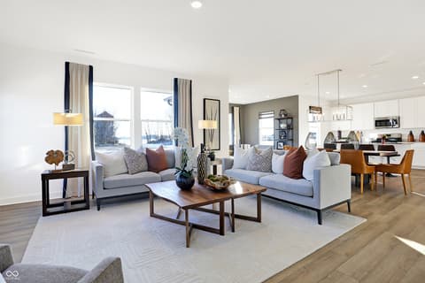 Timbers Venture is a collection of new single-family homes coming soon to The Timbers masterplanned community in Noblesville, IN. Amenities will include a swimming pool, pool house and playground. The Timbers offers a convenient location close to excellent shopping and dining in historic Downtown Noblesville. Recreation sites include nearby Morse Reservoir and city parks that host events from a summer movie series to the Indiana Peony Festival. The largest floorplan in the collection, the Valencia home offers convenience and comfort. A separate bedroom and a study can be found off the foyer, providing space for guests and a practical home office. The Great Room, dining room and kitchen are arranged among a spacious open floorplan. Don't miss the light filled morning room! Four bedrooms and a loft are located on the second floor. *Photos/Tour of model may show features not selected in home.