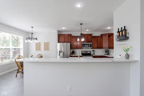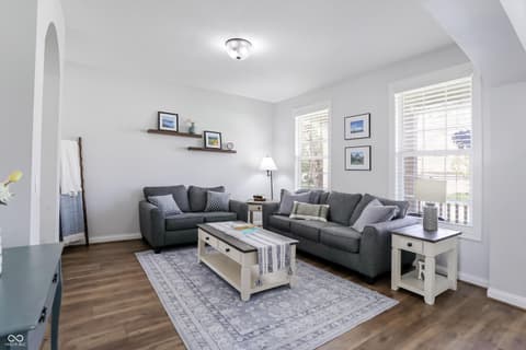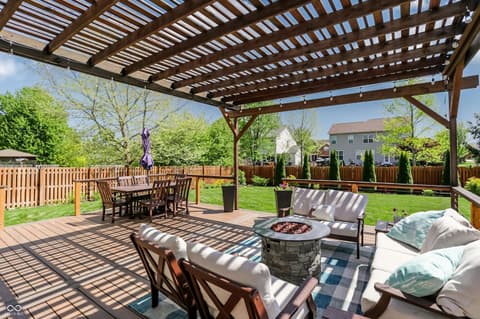 Welcome home to this exceptional 5-bedroom, 3.5-bath residence situated in the highly desirable Zionsville School district. The open floor plan offers abundant natural light and is enhanced by a central fireplace with newly installed built-in bookshelves. On the main level, you'll find a flexible room suitable as a den, private office, or bedroom, as well as an updated kitchen featuring stainless steel appliances, quartz counter tops, and generous space for gatherings. New flooring extends throughout the main level for a cohesive look. The recently finished basement provides versatile living space ideal for entertaining, a home gym, media area, plus an additional bedroom, and a full bathroom. Step outdoors into a meticulously landscaped backyard oasis, enclosed by a privacy fence and complemented by a new deck and pergola. Upstairs, the spacious master suite boasts a vaulted ceiling and a renovated bath with double sinks, freestanding tub, and separate shower. Two additional bedrooms share a Jack-and-Jill bath, accompanied by a loft area. Please refer to the attachments for a comprehensive list of updates. Enjoy access to outstanding neighborhood amenities, including a pool, playground, and tennis courts.