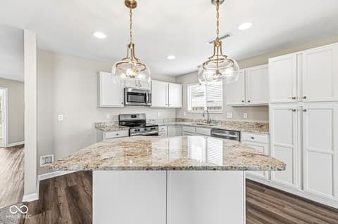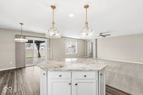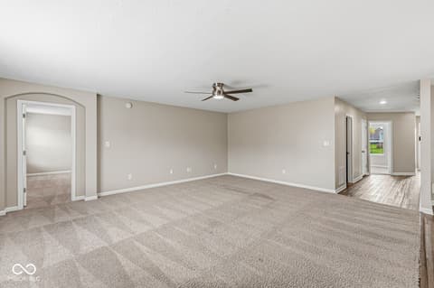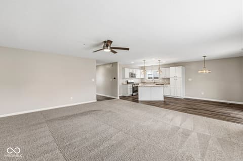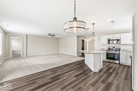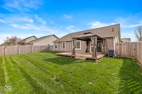 Looking for a turn key property? You found it! Welcome home to this immaculate 3 bed/2 bath split floorplan ranch in sought after McCordsville. The entire interior of this home has been freshly painted including doors and baseboards. Open concept kitchen features freshly painted white cabinets, new dishwasher, new lights, granite counters & center island with seating. Kitchen is open to large family room filled with loads of natural light. Newer carpet in all bedrooms and luxury plank flooring throughout the rest of the home (2024). Primary bath updated with new faucets, fan and lighted mirror. Step into the back yard onto the covered deck (built in August 2024) featuring lights and a fan as well as curtains for added privacy. Speaking of privacy...new wood privacy fence installed in November 2024. Exterior trim was painted 2024, this seller has left no stone unturned! Woodhaven community pool, basketball courts, and playground located just a stones throw away! Come see this adorable property today!