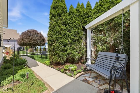 Experience the perfect blend of elegance and effortless living in this stunning ranch-style residence, located in the Lochaven Courtyard community. Designed with an airy, open-concept floor plan and soaring 10-foot ceilings and plantation shutters, this home offers a sense of grace from the moment you step through the door. The heart of the home is a gourmet kitchen that flows seamlessly into a spacious family room, anchored by a cozy gas fireplace. The thoughtful layout includes a formal dining room currently utilized as a den, while a third bedroom offers the perfect footprint for private home office. The primary suite serves as a true retreat, featuring a charming bay window, an expansive walk-in closet, a spa-like ensuite complete with double vanities, garden tub, and separate shower. For those seeking additional space, the unfinished partial basement is a rare find, boasting 9-foot ceilings, an egress window, and a bathroom rough-in-a blank canvas ready for a custom guest suite or media room. Beyond the interior, the home extends into a private outdoor oasis. The home features irrigation and a secluded courtyard patio, equipped with a retractable sun awning and surrounded by upscale landscaping within a wrought-iron fenced rear yard. This meticulously maintained property features significant recent upgrades, including new carpeting, tankless water heater, and a sump pump with backup. The two-car garage is a hobbyist's dream, boasting a 6-foot storage extension and a new insulated garage door. Enjoy the neighborhood lifestyle with 2-pools, playground, tennis courts, and walking trails.