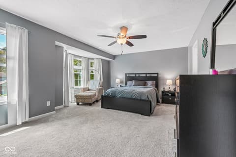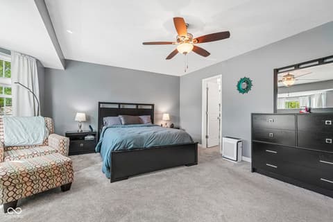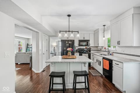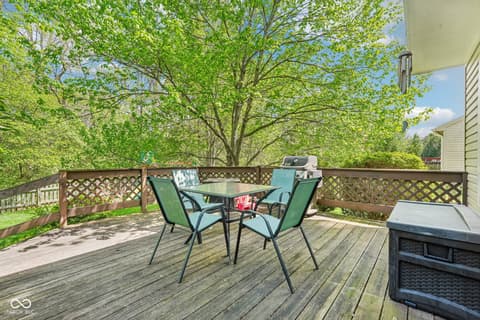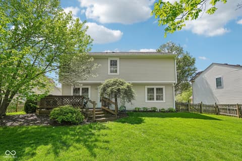 Welcome home! This beautifully maintained 4-bedroom home in Eller Run of Fishers has been thoughtfully updated with care. Step outside and enjoy the serenity of your private, fully fenced backyard-complete with direct access to a walking trail, wooded views, and a peaceful creek. Mature trees and professional landscaping create a truly inviting outdoor retreat. Inside, natural light pours in through the bay windows, enhancing the home's warm and welcoming feel. The family room features a cozy wood-burning fireplace, while a dedicated dining area offers the perfect space for gatherings. Just off the garage, you'll find a spacious, updated laundry room (2022) with abundant cabinetry for added storage and convenience. The updated kitchen is both stylish and functional, showcasing quartz countertops, an island with bar-top seating, white cabinetry, a tiled backsplash, and updated black appliances. Upstairs, the spacious primary suite includes a beautifully updated bathroom (2018) featuring a double vanity with quartz countertops, tiled flooring, and a large walk-in tiled shower with a pebble floor and built-in bench. The generous walk-in closet provides plenty of storage. With four bedrooms total, there's flexibility to create a home office, playroom, or guest space to fit your needs. Additional updates for peace of mind include all-new triple-pane windows (2023), HVAC system with humidifier (2025), added exterior insulation (2024), and a fully encapsulated crawlspace with dehumidifier (2025). Move right in and start making memories in this exceptional home!