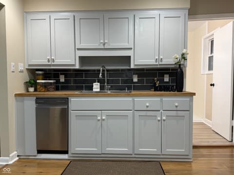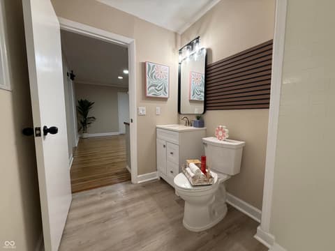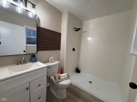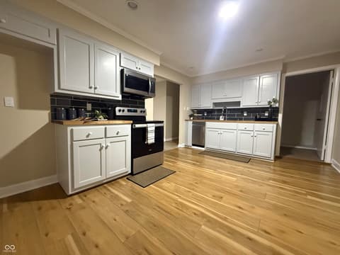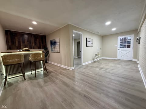 Welcome to 651 Fabyan Rd, Indianapolis-a fully renovated, move-in-ready home with a clean, modern aesthetic and high-end finishes throughout. The redesigned kitchen features sleek tile work, contemporary cabinetry, and stainless steel appliances, opening seamlessly into the main living space. The family room is highlighted by a striking modern fireplace with custom acoustic detailing, creating a bold yet inviting focal point. Both bathrooms have been fully updated with streamlined, spa-inspired finishes. Fresh paint, a brand-new HVAC system, and an epoxy-coated garage floor add comfort, efficiency, and a polished look. The fully fenced backyard offers a private outdoor retreat, complete with a newly built pergola designed with a modern edge-perfect for relaxing or entertaining. Located in a quiet neighborhood within walking distance to Perry Township schools, this home delivers modern living with style and convenience.