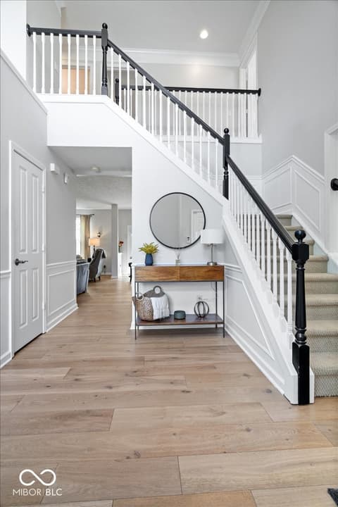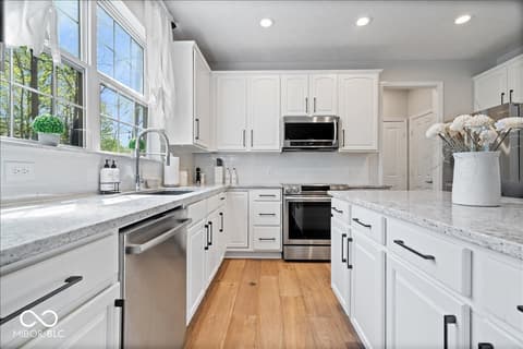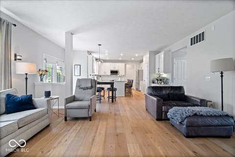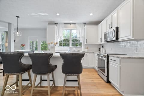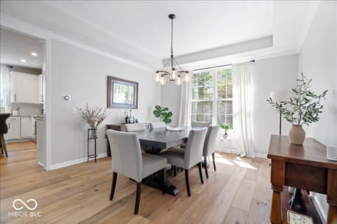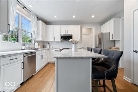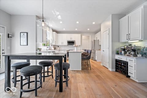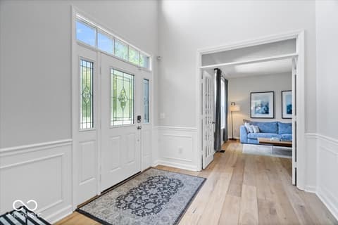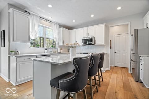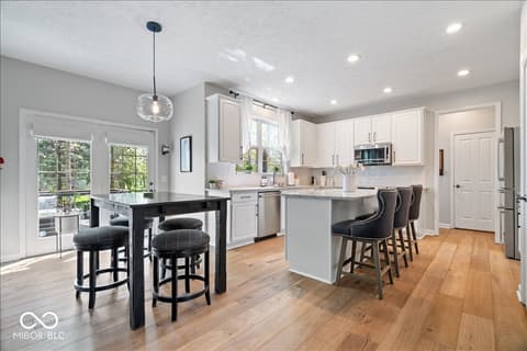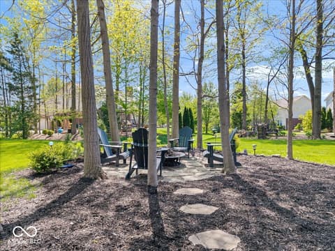 Tucked away in one of Zionsville's most desirable neighborhoods, this stunning 5-bedroom, 3.5-bath home offers the perfect blend of privacy and convenience-just minutes from the charm of Downtown Zionsville and the growing amenities of Whitestown. Step inside to discover a light and bright, beautifully updated interior. The white kitchen is crisp, clean, and designed for both function and gathering. New engineered hardwood floors flow seamlessly throughout the main level, complementing a dedicated home office/den and an elegant formal dining room perfect for hosting holidays or intimate dinners. Upstairs, 4 generously sized bedrooms and in the finished lower level, an additional bedroom and full bath. Out back, the home truly shines. The backyard feels like a hidden escape, framed by mature, full trees that offer both beauty and privacy. A charming paver path leads to a cozy firepit area-perfect for cool Indiana evenings-while the spacious deck invites everything from summer barbecues to quiet morning coffee. A peaceful setting with quick access to everything you love about Zionsville living, all wrapped into one exceptional property.