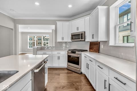 Step inside this stunning tri-level townhome, ideally located just minutes from Downtown Carmel, the Monon Center, and US-31. Built in 2022, this home showcases high-end finishes throughout and offers 3 bedrooms, 4 bathrooms, and a spacious 2-car garage. The lower level is perfect for entertaining, featuring a convenient half bath and kitchenette. On the main level, you'll find a beautifully designed kitchen complete with a gas cooktop, quartz countertops, and an oversized center island, opening to a bright living space with a cozy gas fireplace and room for dining. Just off the stairs, a versatile flex space makes the perfect home office or hobby area. Upstairs hosts all three bedrooms, including a spacious primary suite with a large ensuite bath and walk-in closet. You'll also find a full-size laundry room for added convenience. Enjoy low-maintenance living in a prime location close to shopping, dining, and everyday conveniences.