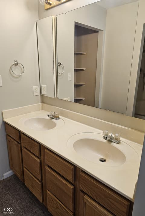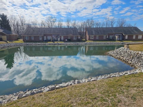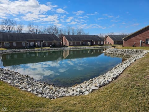 NEW Carpet has been installed. PRICE DROP $10,000!!! All Brick Paired Patio Home, not a 55 & over community. Yet enjoy lawn care and exterior maintenance completed by someone other than you! Step outside onto the back patio with a view of the pond and fountain. 2nd bedroom is staged as an extra living area but could be either. Primary Bedroom and Bonus Room are all together and open but could be another bedroom. Very versatile floor plan with wide doorways. Primary bathroom has a step-in shower. Walk-in Closets in both areas. Ceiling fans in most rooms. All blinds stay. Nice size laundry room with lots of built in storage. Kitchen has a breakfast bar, pantry, desk area and room for small table. Living room with Cathedral ceiling, gas log fireplace and dining area combo. All kitchen and laundry appliances stay including, water softener (approx. 2 yrs), portable air conditioner in garage & garage heater. Pull down attic staircase in the finished 2- car garage. Easy access to I-65, Emerson, Greenwood, Hospitals, shopping and restaurants. Priced to sell! TV's and mounts can stay! New Kitchen faucet & sprayer. Alarm system stays but not monitored or used. Duct work has been professionally cleaned. Buyer to verify all room sizes, they are approximate.