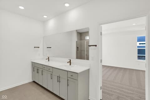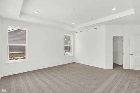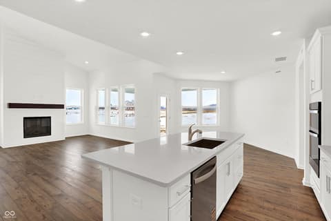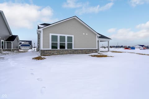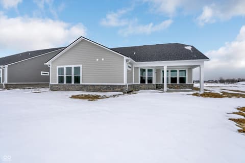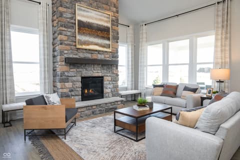 Welcome to the Charleston plan located at 6719 Thresher Pass, a charming single-family home located in the vibrant 55+ community of Gatherings at Aurora in McCordsville built by Beazer Homes. This beautifully built, new construction, home features 3 bedrooms and 2.5 baths, offering a perfect blend of comfort and convenience. With 2,236 sq ft of living space, the open-concept layout includes a bright and airy living room, a modern kitchen with an oversized quartz island, upgraded white Winstead-style cabinets with crown molding, tile backsplash, custom hood vent, and a dining area ideal for both casual meals and entertaining. The primary suite is a serene retreat, complete with a large tile walk-in shower, dual sink vanity, and a large walk-in closet connected to the laundry room. Additional bedrooms are spacious and versatile, perfect for guests or a home office. Step outside to enjoy the covered back patio providing a wonderful space for relaxation and outdoor activities. The property sits on a 0.25 acre lot, offering plenty of room for gardening or simply enjoying the outdoors. Additional highlights include a cozy fireplace with shiplap accents, a stunning 2-story great room, and a 3-car tandem garage. Residents of the Gatherings at Aurora community enjoy access to a range of amenities designed for active adults, including a pool, clubhouse, fitness center, pickleball courts, and golf simulator. The home is conveniently located near the new McCord Town Square District, Geist Reservoir, and Daniel's Vineyard, making it an excellent choice for those seeking a vibrant and engaging lifestyle. Beazer Homes is proud to be America's #1 Energy-Efficient homebuilder. In 2024, our homes achieved an average net HERS score of37 (including solar) and a gross HERS score of 42-the lowest publicly reported scores among the top 30 U.S. homebuilders identified by Builder Magazine's Top 100 list (ranked by 2024 closings).