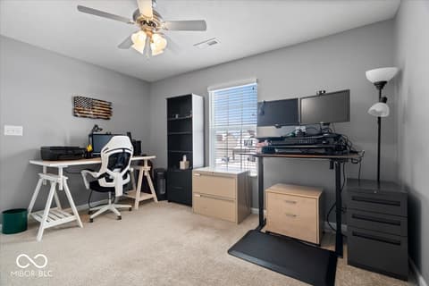 Tucked away on a quiet cul-de-sac, this charming home offers peaceful living with a delightful view of the community playground and walking path from its welcoming front porch. Located in the highly sought-after Sagebrook neighborhood of McCordsville, this beautifully maintained 4-bedroom, 2.5-bath home blends comfort, style, and functionality. Step inside to a thoughtfully designed main level featuring a spacious family room and an open-concept kitchen perfect for gathering. Enjoy a large center island, walk-in pantry, abundant cabinetry, and a bright dining area-ideal for both everyday living and entertaining. Upstairs, retreat to your private primary suite complete with a walk-in closet and en-suite bath. All bedrooms have walk in closets with multiple shelves, and the primary & 4th bedroom have custom closet systems installed. A generous loft provides flexible space for a home office, playroom, or cozy lounge. Each bedroom includes custom closet organization, offering both convenience and efficiency. Out back, unwind in your fully fenced yard featuring a screened-in porch and patio-perfect for morning coffee or evening get-togethers. The heated, fully insulated three-car garage with built-in shelving adds even more practicality. Additional highlights include most appliances still under manufacturer warranty including less than 2 year old refrigerator, and a new water heater installed in 2025. Located within the desirable Mount Vernon Community School District and just minutes from shopping, dining, parks, and commuter routes, this home truly has it all. New carpet on the main level and staircase and fresh paint in the upstairs bath. A one-year home warranty is also included for added peace of mind. Enjoy the feel of a new home-without the wait.