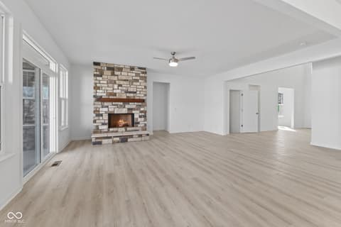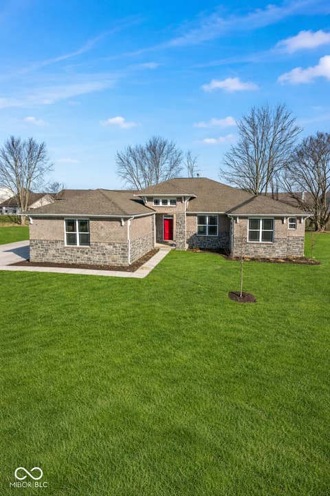 Use 6949 W Winding Bend, McCordsville, IN 46055 in GPS to find home. Beautiful new construction by Davis Homes close to Geist. Woodford floorplan with Modern Prairie elevation. Kitchen boasts SS appliances, granite countertops, upgraded cabinets, and an island and opens up into the large gathering room featuring a stone surround wood burning fireplace. Nicely sized eat-in dining nook overlooking back yard. Rear covered porch perfect for entertaining is right off the gathering room. Primary bedroom features two large, walk-in closets. Ensuite bath features spa shower. Main floor flex space can be used as a home office. Plumbed, unfinished basement provides countless possibilities. Home comes with a 2-10 warranty protection against workmanship, distribution systems, and structural defects throughout the warranty term.