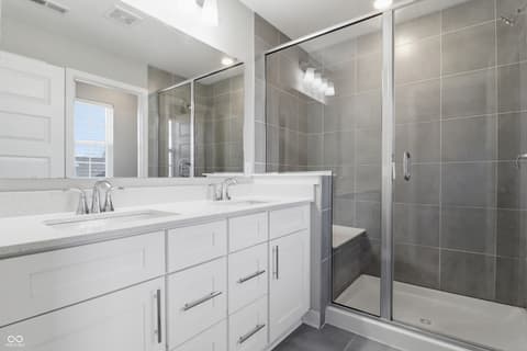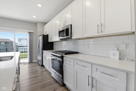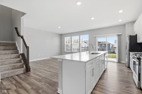This 2022 Townhouse, featuring 3 bedrooms and 2 car garage in a great Carmel location, awaits its new owner. It includes a Primary bedroom with tray ceiling, Tiled bathroom and double quartz countertop sinks. The lower level has an extra room with a full bath, suitable for additional living space or office. New carpet and fresh paint in August 2025. Kitchen is furnished with stainless steel appliances and a quartz countertop. The porch on the main level is what you need for a relax evening or coffee time. The community amenities include a park, playground, pool, basketball court and walking trails.
