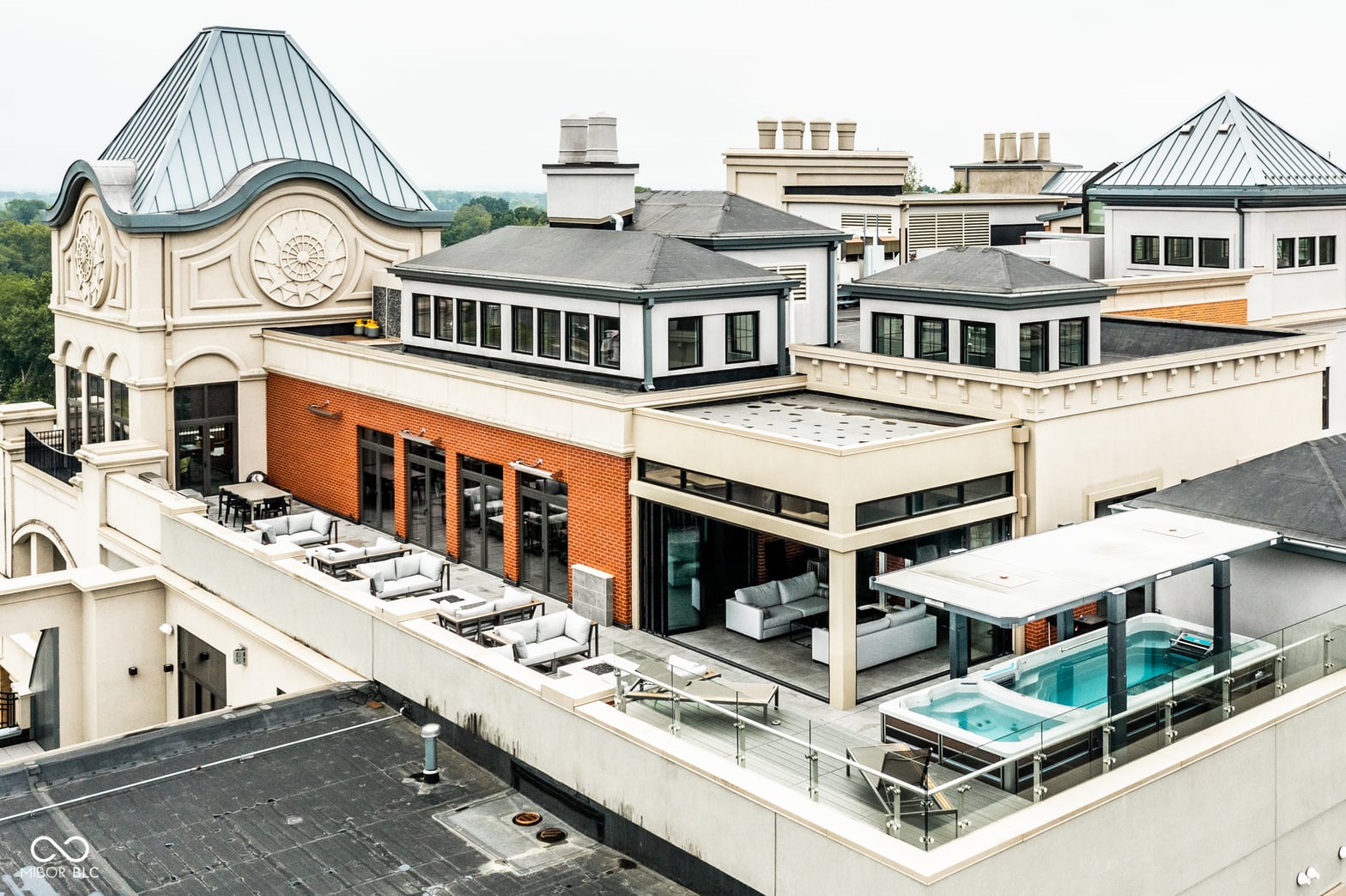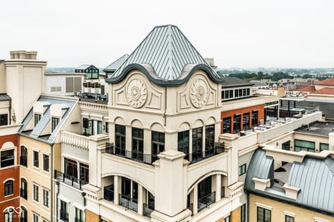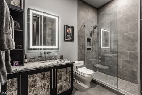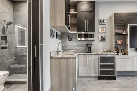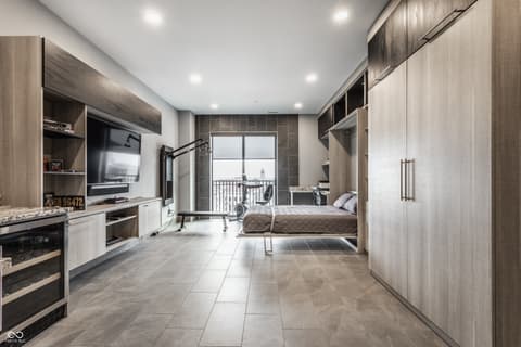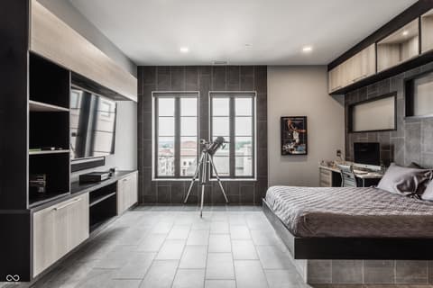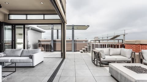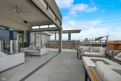 Sky-High Sophistication in the Heart of Carmel. Experience a lifestyle that's literally above it all in this extraordinary downtown Carmel penthouse. As the city's highest private residence, it offers sweeping, uninterrupted views that stretch for miles - a rare blend of privacy, prestige, and modern elegance. Designed for both dramatic entertaining and serene everyday living, this residence is a showcase of architectural innovation and impeccable craftsmanship. The main living space impresses with soaring 23-foot ceilings and walls of glass that flood the home with natural light, while a sleek, fully equipped bar with dual Azur refrigerators and a wine cooler elevates every gathering. For the ultimate at-home entertainment, the Dolby theater provides a true cinematic experience with a retractable 9-foot screen, acoustic wall treatments, and automated blackout shades. Culinary enthusiasts will delight in the chef's kitchen, featuring professional-grade gourmet appliances, a sprawling island accommodating over 25 guests, and a seamless layout perfect for intimate meals or grand soirees. The primary suite is a private retreat, complete with a floating California king bed, skylight, keypad entry, and a heated outdoor lounge with integrated sound. The spa-like ensuite offers a steam shower, three-person infrared sauna with chromotherapy, and a luxurious walk-in closet. Each secondary bedroom comes with its own kitchenette, beverage station, microwave, and integrated Sonos audio system, while a flex suite with a Murphy bed and Tonal Smart Gym provides versatile living options. The custom bunk room offers an ideal space for guests or teens. Step outside to a remarkable 2,000-square-foot rooftop terrace featuring 360-degree skyline views, three fire pits, a swim spa and jacuzzi, outdoor heating, and a full kitchen with dual grills - a spectacular backdrop for entertaining at any level.