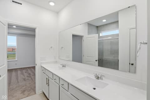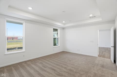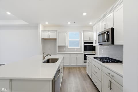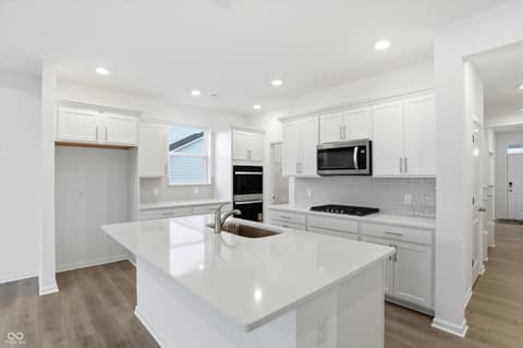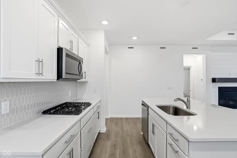 Welcome to the Landon plan located at 7216 Portico Lane, a beautiful single-family home located in the heart of McCordsville built by Beazer Homes. This stunning new construction home features 4 beds and 3.5 baths, offering ample space for comfortable living. The 2,895 sq ft layout includes a spacious living room, a modern kitchen with a large quartz island, gas cooktop, double ovens, tile backsplash, and a cozy dining area. The primary suite boasts a tile walk-in shower and dual vanities, while the additional bedrooms provide plenty of room for family or guests. Step outside to enjoy the covered back patio on the 0.25 acre lot, perfect for entertaining or relaxing. Additional highlights include a cozy fireplace in the great room, double ovens, first floor primary suite, and a 3-car garage. Located in the desirable Colonnade neighborhood, this home is close to the new McCord Town Square District, Daniel's Vineyard, and top-rated schools making it an ideal choice for those seeking convenience and comfort. Beazer Homes is proud to be America's #1 Energy-Efficient homebuilder. In 2024, our homes achieved an average net HERS score of 37 (including solar) and a gross HERS score of 42-the lowest publicly reported scores among the top 30 U.S. homebuilders identified by Builder Magazine's Top 100 list (ranked by 2024 closings). Take advantage of our special buyer incentives which may include closing costs, design studio upgrades, FLEX dollars, and more. Contact us today to learn more about how you can benefit from these exclusive offers.