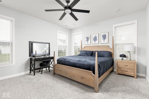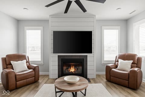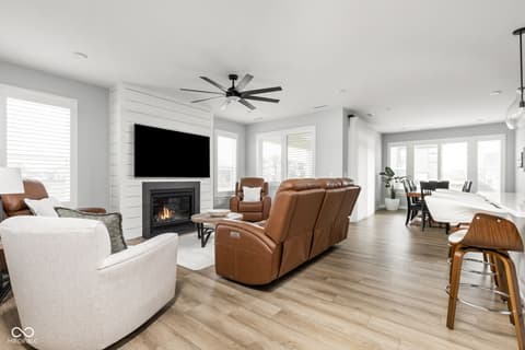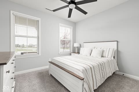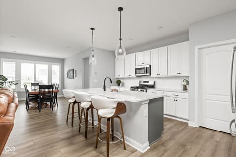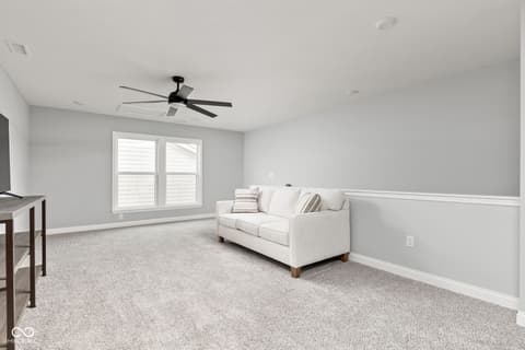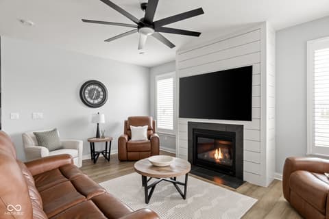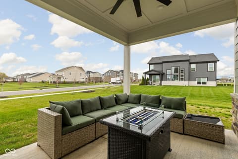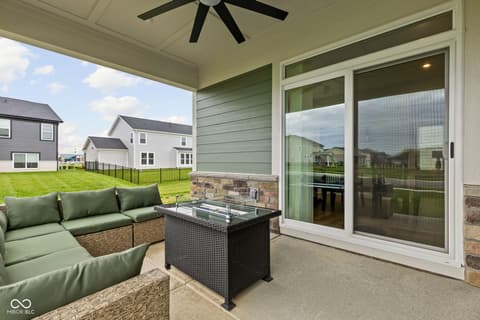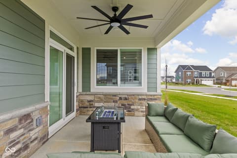 Welcome to 7227 Bailow Ct - a heavily sought after Camden ranch with a finished 2nd level up in McCordsville Indiana. Beautifully crafted, meticulously AND impeccably maintained, built in 2025 (but less than a year old) turnkey home that blends modern style with everyday comfort. Situated on a spacious corner lot, this better than current model and new construction pricing corner residence boasts 2,528 square feet of thoughtfully designed living space. At the heart of the home, you'll find a bright, open-concept kitchen featuring sleek quartz countertops, classic shaker cabinetry, and a large center island perfect for meal prep or gathering with friends and family with extra seating, while the kitchen flows effortlessly into the hearth room, where a cozy gas log fireplace creates the perfect spot to unwind or into the morning room for dining. The two-story layout includes three generously sized bedrooms, a loft currently used as a family room upstairs (you can make it a 4th bedroom!) and an office/workout bonus room, offering plenty of room to relax and recharge. Two full bathrooms provide both style and function, including a spa-inspired primary bath ensuite with a double vanity and a beautifully tiled walk-in shower. Spacious walk-in closets add to the home's practical appeal. Step outside to enjoy a charming front porch and a private comfortable patio - ideal for morning coffee, outdoor dining, or simply enjoying your surroundings. Additional modern and custom finishes include canned lighting, ceiling fans, boxed louvered shutters, auto/smart drape vertical blinds at the patio door and cordless blinds throughout and entertaining outdoor spaces, this home is ready to offer comfortable, low to no maintenance, and stylish living in a desirable neighborhood and community offering generous amenities as a park, playground, pool and walking trails. You can't build this square foot for less in McCordsville!