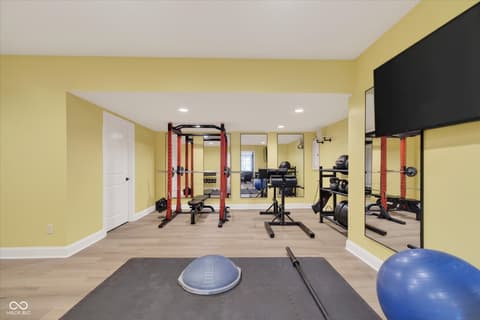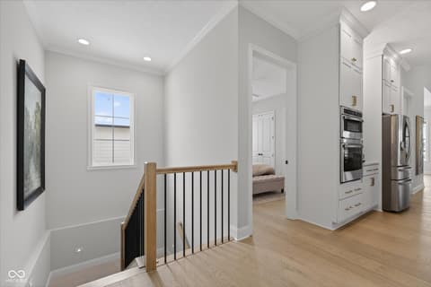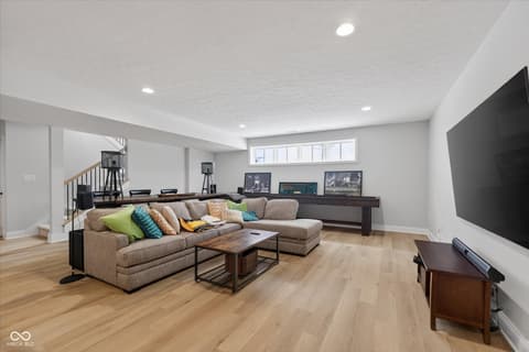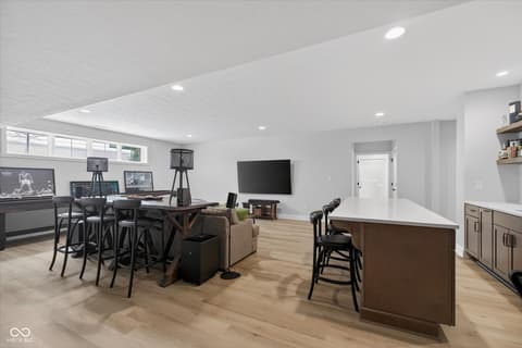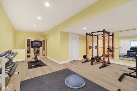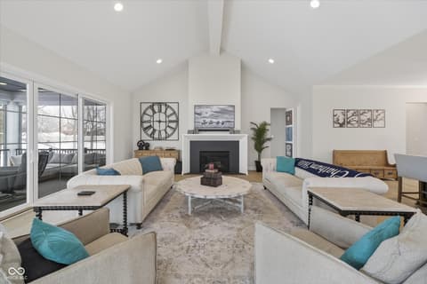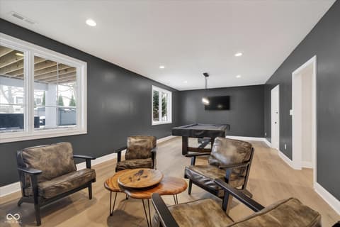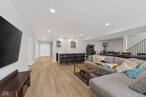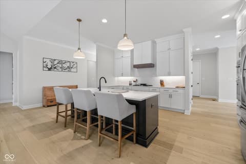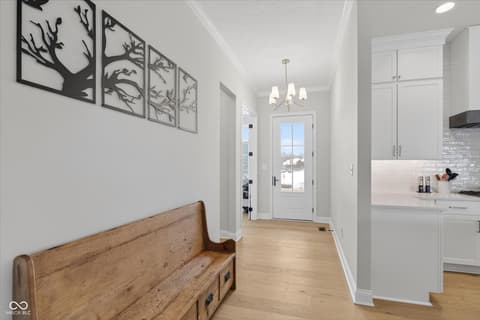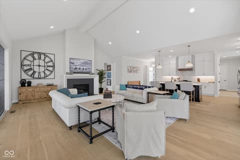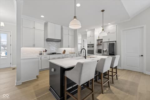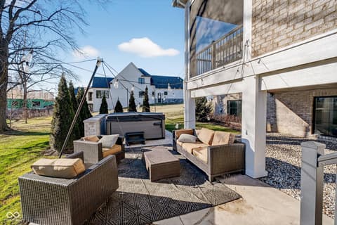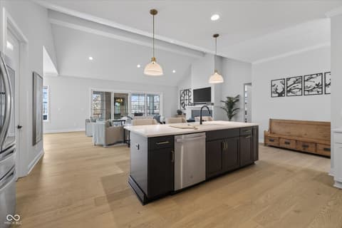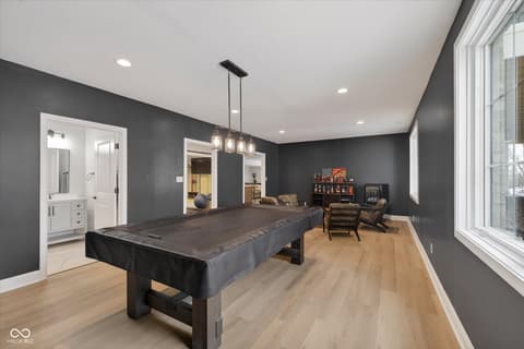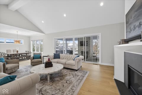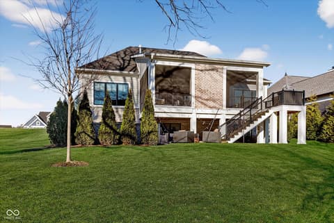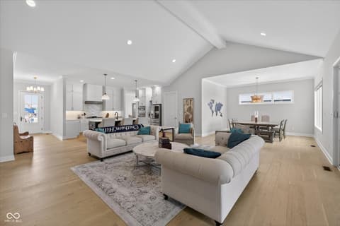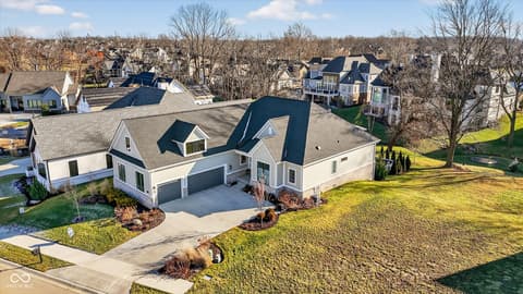 Welcome to an exceptional ranch home in the gated community of Chatham Hills, offering refined living across a thoughtfully designed main level and a beautifully finished lower level. Situated on a quiet cul-de-sac, this 2023 custom build combines modern comforts with timeless architectural detail. The exterior features brick and cement siding, mature trees, and inviting outdoor spaces including a covered front porch, an open deck with motorized screens overlooking the landscaped yard. Inside, soaring ceilings, expansive windows, and warm plank flooring create an open and welcoming atmosphere. The gourmet kitchen is anchored by a large center island and includes double ovens, gas cooking, a walk-in pantry, and seamless flow to both the dining area and great room. A gas fireplace adds an elegant focal point for everyday living or entertaining. The main level also includes a private office, well-appointed laundry room with utility sink, and two spacious bedrooms including the serene primary suite, which offers his and her walk-in closets and a spa-inspired bath with a large shower and double vanities. The lower level extends the living space with a generous family room, recreation area, exercise room, additional bedroom, 2 full baths, and ample storage. Thoughtful upgrades such as egress windows, 9'+ ceilings, and a wet bar enhance livability and function. 4th bedroom is currently used as a rec/billiard room that can be easily converted. Outdoor and community amenities further elevate the experience. Chatham Hills provides access to walking paths, golf, clubhouse facilities, fitness centers, indoor and outdoor recreation, and beautifully maintained common areas. With a three-car garage, modern mechanicals, and an ideal location near Westfield's trail systems, parks, and local conveniences, this home delivers a distinctive blend of comfort, craftsmanship, and community living.