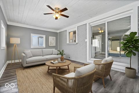 A rare opportunity set on two private acres in Fortville, this exceptional estate offers a beautifully designed multi-generational living experience without compromise! Thoughtfully crafted for connection and independence, the property features two fully updated residences, each with their own private entrances, seamlessly joined by an all seasons room and a shared 2 car garage. The main residence offers 4 bedrooms and 3 bathrooms, while the secondary residence includes 3 bedrooms and 2 bathrooms. Both are finished to the same high standard with modern updates, beautiful finishes, and intentional layouts. Whether welcoming extended family, hosting long-term guests, or creating a private living arrangement for loved ones, this home provides flexibility while preserving privacy and comfort for all. Outdoors, the lifestyle continues with an in-ground pool, acreage and a pole barn, perfect for storage, hobbies, or future business possibilities. This is a property designed to grow with you, adapt to your needs, and elevate everyday living!