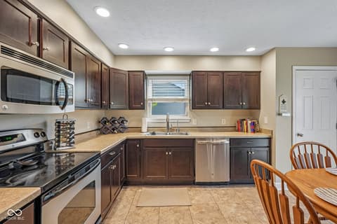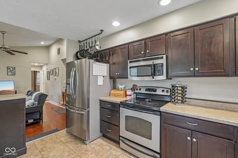 Lovely move-in ready 3BR/2BA ranch in Lawrence Township checks ALL the boxes! Situated on a spacious .38-acre lot with a fully fenced rear yard and peaceful pond views, this home offers the kind of layout and livability that's hard to find at this price point. The well-designed open floor plan features vaulted ceilings, a split bedroom layout, and a comfortable flow that works beautifully for first-time buyers and those looking to downsize without giving up space or function. The great room centers around a gas fireplace and opens seamlessly to the eat-in kitchen - updated with rich chocolate cabinetry, stainless steel appliances, and gorgeous hickory hardwood floors throughout. Smart mechanical upgrades: roof four years old, high-efficiency furnace, tankless water heater, and water softener in 2014. PLUS they are providing a home warranty for the new buyer's peace of mind. The attached 2-car garage features a clean, finished epoxy floor. NO HOA! Be sure to check out the floor plan and 3D tour - once you see how this home lives, you'll want to schedule a showing. Seller is including a 13 month HWA Diamond Home Warranty.