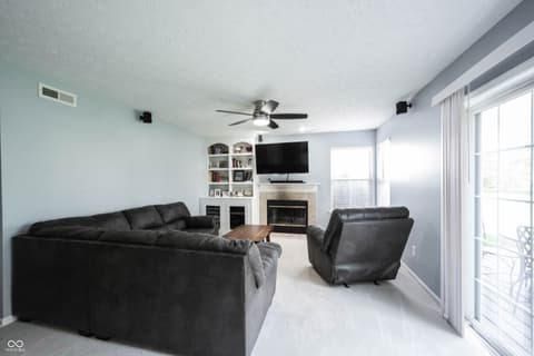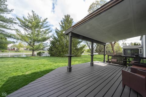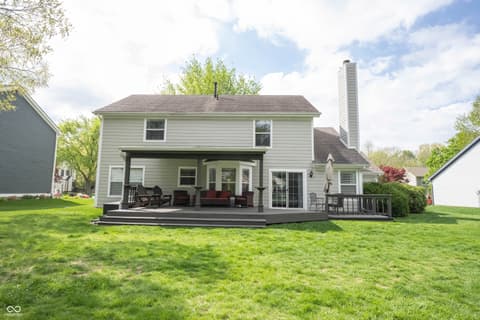 Welcome HOME to Burberry Place, located in the HEART of Fishers! Updated home that's move in ready! Open the door to 4 bedrooms/2.5 baths, plenty of living space featuring the most important updates, kitchen and baths! Charming curb appeal the moment you arrive, with stately brick and 3 car garage! Step inside to update hardwood floors flowing through the living and dining room. Dining Room features crown molding and chair railing gives an elegant finish to this space, being open to the living room gives plenty of space for those larger gatherings! Remodeled kitchen features New rich espresso finished cabinets, hardware, New SS appliances, (all included), a Center island adding to the counter space, a perfect gathering place while entertaining! Greatroom with views of the backyard and the serene pond through your patio doors. Cozy gas fireplace flanked by a built-in for your AV components, also featuring surround sound w/Bose speakers. Upstairs: 4 generous sized bedrooms including Owners Suite with remodeled ensuite bath! Stunning tile work, all new fixtures, dual sink vanity with plenty of storage! WIC completes this space offering plenty of storage! 3 bedrooms in close proximity to 2nd full bath featuring updated laminate flooring. Other notable features making this home move in ready NEW HVAC, Overhead Lighting/Fans/Carpet upstairs! Addition of invisible fence is just another perk! Enjoy the expansive covered porch/deck a true extension of the home! Your backyard will be your oasis this summer with serene views of the pond! Finished 3 car garage with plenty of storage and room for more than just vehicles! Fantastic neighborhood amenities, just in time for summer! Neighborhood Pool, Park, Playground, Tennis/Pickleball Court! Fantastic location in Fishers walkable to schools (SLDM), downtown Fishers for dining and entertainment! All within award winning HSE schools!