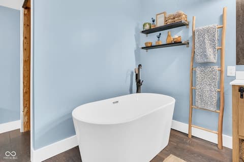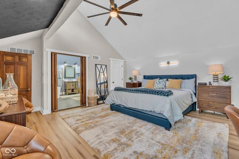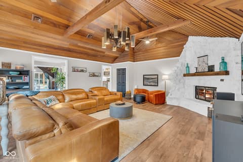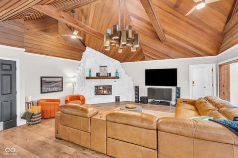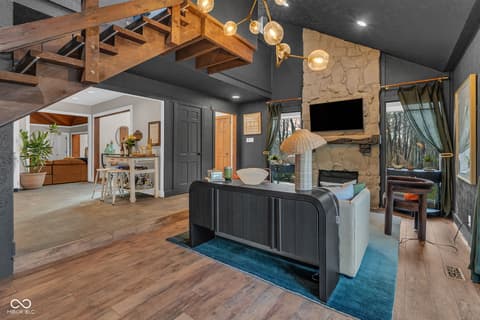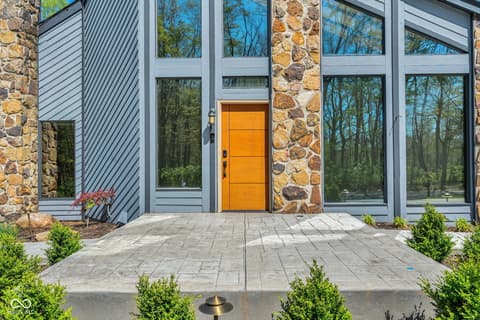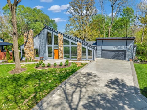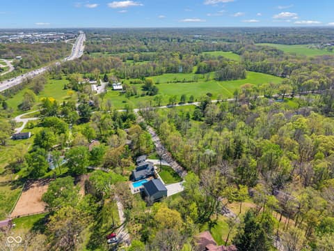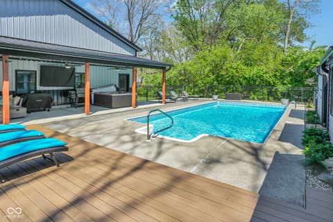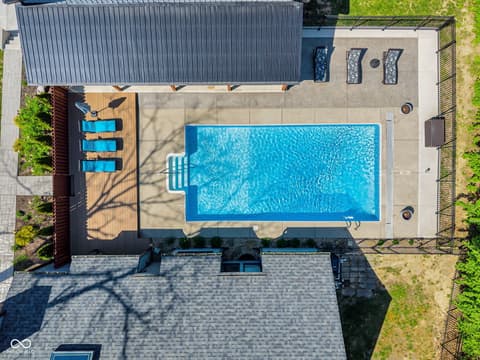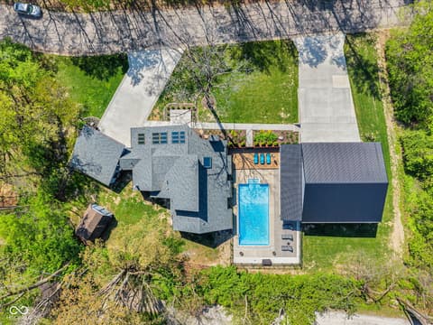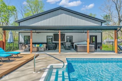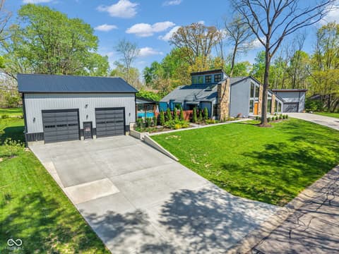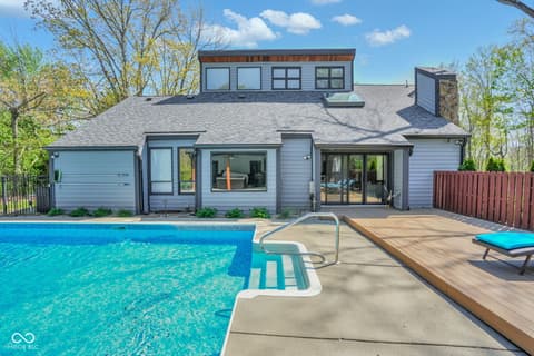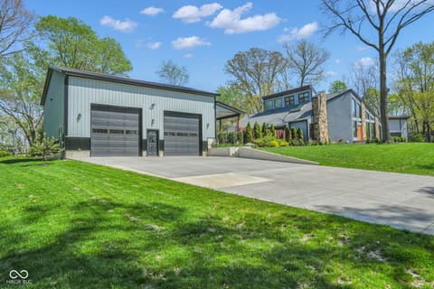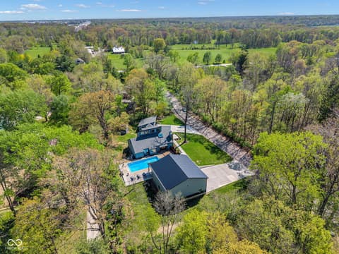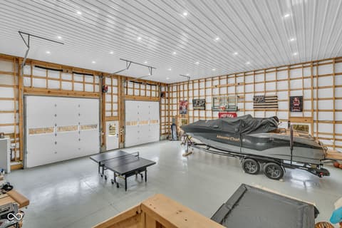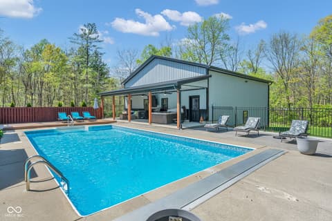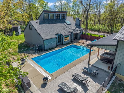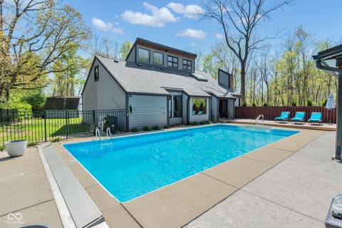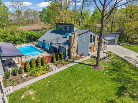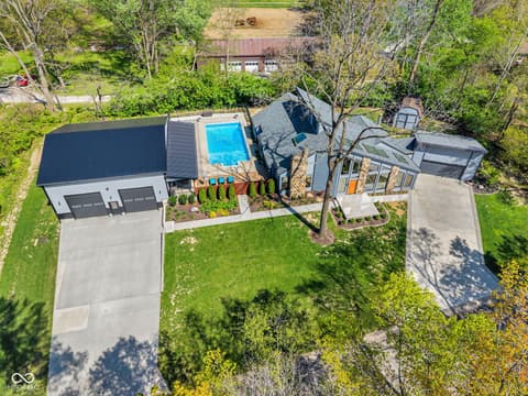 Experience refined living in this exceptional luxury retreat set on nearly an acre. From the moment you step inside, soaring cathedral ceilings, skylights, and dramatic front windows complete with tint and automatic blinds flood the space with natural light. Professionally painted interior and designed family room elevate the home's sophisticated style. Rich wood accents and thoughtfully curated design details create a warm, modern lodge aesthetic- the kind of space that makes every day feel like a getaway. The primary suite is its own sanctuary. Imagine soaking in the spa-inspired bath and then stepping into a professionally designed walk-in closet that feels like a boutique made just for you. Step outside to the resort style escape featuring an inground pool to lounge by and a hot tub to unwind in under the stars. The professionally landscaped grounds and new concrete driveway add to the polished, estate-like presence. A highlight of this property is the newly constructed 40x40 pole barn built on a foundation with 18-ft ceilings. Fully insulated and sealed with 12x12 doors, it's an incredible flex space to shoot hoops, perfect your tennis game against the tennis wall, design a private gym, have your dream workshop, or create the ultimate entertainment zone. It's the perfect place to house your boat, weekend toys, or collector cars too! Additional updates include newer HVAC, hot water heater, and water treatment system, plus a roof just six years old- offering peace of mind for years to come. Located in the highly sought-after Zionsville Middle School and Zionsville Community High School district, this property blends luxury, recreation, and privacy into one extraordinary opportunity to make this your new home sweet home!