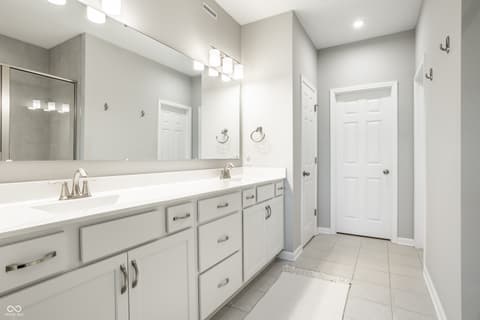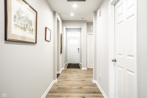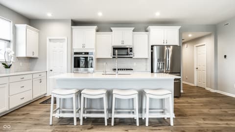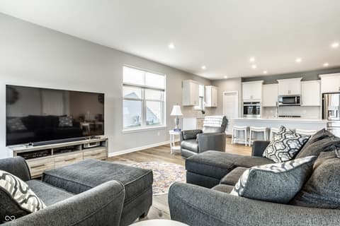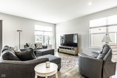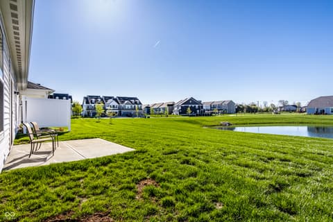 Enjoy low-maintenance living in this beautiful, "better than new", paired villa located in the popular Lancaster community in Westfield. Numerous improvements after purchase of this ENERGY STAR certified home include new refrigerator, water softener, central vac, reverse osmosis, gas cooktop (converted from electric), custom window treatments with blackouts, storm door, washer/dryer, smart lock, and more! The open floor plan accommodates today's lifestyle with a spacious feel, abundant natural light, and seamless flow of living areas. The stylish kitchen boasts stainless appliances, quartz counters, and expansive island overlooking the living room with patio access, where sunsets over the pond are truly a sight to behold. Relax and unwind in the primary suite with its spa-style bath and generous walk-in closet. Two additional bedrooms tucked away at the front of the home for privacy. All bedrooms upgraded to vinyl plank floors. Fabulous neighborhood amenities include a clubhouse with pool, sports court, playground, and walking paths coupled with a convenient location near Grand Park, the Monon Trail, Urban Apples, and US 31 access!