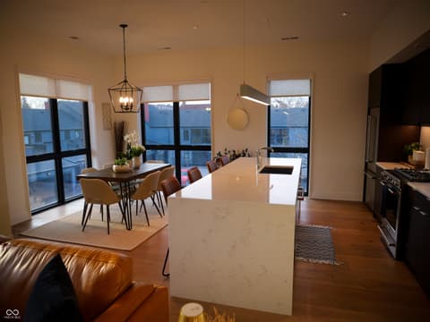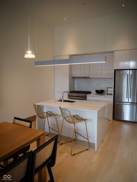 Experience elevated urban living in the heart of historic Chatham Arch, just steps from Bottleworks District and Mass Ave in downtown Indianapolis. Built in 2021, this stunning corner-unit condo offers 2 bedrooms, 2 full bathrooms, and 1,470 square feet of thoughtfully designed space filled with an abundance of natural light from expansive windows. The open-concept layout is complemented by soaring ceilings (approximately 10 feet) and high-quality finishes throughout, creating a bright, modern, and sophisticated atmosphere perfect for both everyday living and entertaining. The kitchen and living areas flow seamlessly, while the rare private outdoor space provides the perfect spot to unwind in the middle of the city. This luxury residence also includes two EV charging capable parking spaces. Enjoy a true walkable lifestyle with premier dining, shopping, entertainment, theaters, coffee shops, and groceries all just outside your door. The secure building features cameras and coded access, offering peace of mind, while the HOA provides water, sewage, trash removal, Wi-Fi, water softener system, professional landscaping, and snow removal for a low-maintenance, lock-and-leave lifestyle. Offered at $659,000, this is a rare opportunity to own a nearly new luxury condo in one of Indianapolis' most desirable and vibrant neighborhoods.