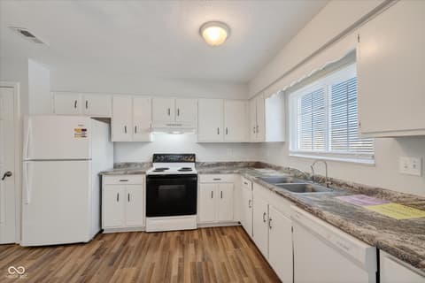 Located in the desirable Park Hoover Village in Washington Township, this well-maintained condo offers peaceful pond views and comfortable, low-maintenance living. Featuring 2 bedrooms and 2 full bathrooms, this home combines functionality with a serene setting. Upon arrival, you're welcomed by a nicely landscaped entry and a common lobby area. The unit is located upstairs, offering added privacy. Inside, you'll find neutral paint tones and attractive vinyl plank flooring throughout, creating a clean, bright and modern feel. The spacious living room provides a relaxing atmosphere with scenic views of the neighborhood pond. Adjacent to the living area, the dining room features updated lighting and access to a newer private balcony through sliding glass doors-perfect for enjoying morning coffee or evening sunsets. The kitchen is equipped with bright white cabinetry, ample counter space, and white appliances, offering both style and practicality. Down the hall, the primary suite includes generous space, a walk-in closet, and an en-suite bathroom with dual sinks and a shower. The second bedroom is well-sized and conveniently located near an additional full bathroom with a tub/shower combination. A versatile flex area provides the perfect space for a home office, reading nook, or hobby area. Carports are available for lease through the HOA at an affordable rate per month. This condo offers a great opportunity to enjoy quiet living with beautiful water views in a sought-after location.