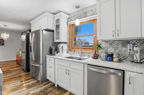 Beautifully updated Southcreek home featuring an outdoor kitchen, theatre room, and a primary shower with a fireplace. Interior upgrades include an updated kitchen (2021), luxury waterproof flooring (2022), and renovated bathrooms. Step into a true spastyle primary bath with a standalone soaker tub nestled inside a generous double shower, enhanced by a fireplace, bidet, Bluetooth sound system, and custom lighting. A fully rebuilt Four Seasons Room, with new windows, cedar siding, insulation, drywall, flooring, and its own minisplit, adds comfortable yearround living space. The backyard is designed for entertaining with a 2022 swim spa (negotiable), outdoor kitchen with built in grill plus a smoker, expanded concrete patios, raised garden bed, and a fenced yard. Major system updates provide peace of mind, including a new HVAC system (2026), new water heater (2025), crawlspace structural reinforcement (2025), two sump pumps, irrigation system, EV charger outlet, second electrical panel, and dedicated 220V spa hookup. Smarthome features include a Ring doorbell, hardwired security cameras, monitored security system (including a smoke detector), and a WiFi garage opener. Home is allelectric, with gas service available. A wellmaintained property with meaningful upgrades and standout indooroutdoor living spaces.