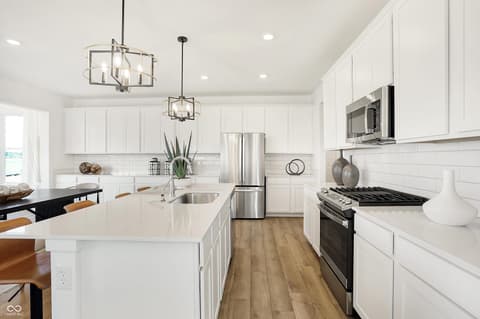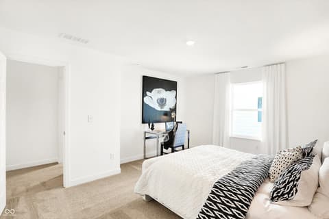 The Cornerstone collection offers some of the largest single-family homes at Beyer Estates, a master-planned community in Fortville, IN. Built to inspire outdoor living, this community offers over 10 acres of common space, featuring trails, a central park, playground and picnic shelter. Situated near vibrant Indianapolis, Fortville provides a serene Midwestern atmosphere with close proximity to excellent recreation sites and upscale shopping at Hamilton Town Center. Flat Fork Creek Park and Geist Reservoir offer year-round activities like hiking, mountain biking, kayaking, fishing and boating. This two-story home includes a spacious open floorplan between the living room, dining room and kitchen on the first floor. The first level is also host to a convenient study located off the foyer and a bedroom with a walk-in closet that could be used as a guest space or a den. Don't miss the light filled morning room! Upstairs, the second floor is occupied by four bedrooms, including the owner's suite, and a loft. A 3 car garage adds extra storage. *Photos/Tour of model may show features not selected in home.