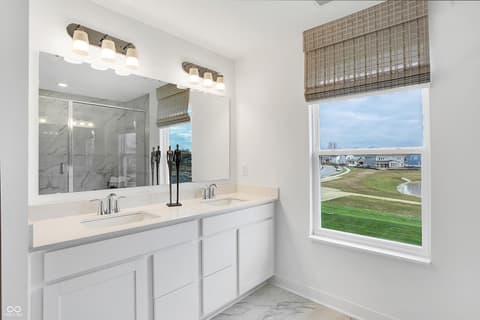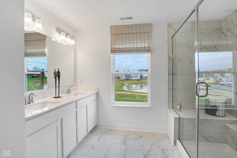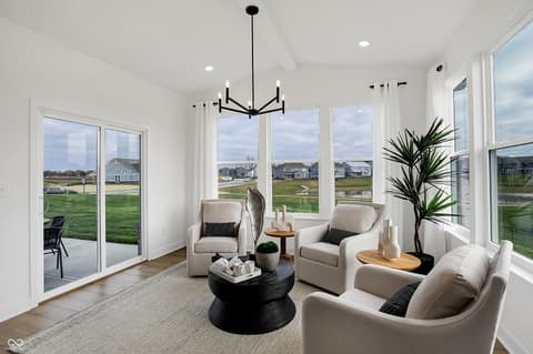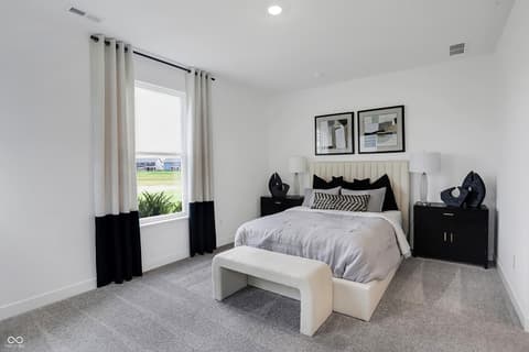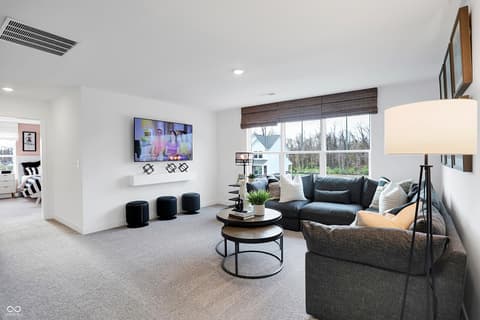 The Cornerstone collection offers some of the largest single-family homes at Beyer Estates, a master-planned community in Fortville, IN. Built to inspire outdoor living, this community offers over 10 acres of common space, featuring trails, a central park, playground and picnic shelter. Situated near vibrant Indianapolis, Fortville provides a serene Midwestern atmosphere with close proximity to excellent recreation sites and upscale shopping at Hamilton Town Center. Flat Fork Creek Park and Geist Reservoir offer year-round activities like hiking, mountain biking, kayaking, fishing and boating. Welcome home to the NEWLY revised Oxford. A beautiful two story that has a grand foyer and is sure to impress. Enjoy the study room as a home office, or a place your children can do their at-home schooling. Beyond the foyer the home expands into the great room and kitchen. This spacious great room offers multiple places and arrangements for fireplaces and windows that can fit any lifestyle. The large island sits at the heart of the kitchen with space for multiple chefs and activities. Next to the kitchen is the breakfast nook that can be expanded to fit an oversized dining room table. Around the corner of the great room is a flex room to be used in many ways, with a large walk-in closet and the option to add a full bathroom for a space that can make any guest feel at home. Don't miss the light filled morning room! Going upstairs opens to a large bonus room, three perfect sized bedrooms with enormous walk in closets, and a full secondary bathroom. Enjoy the option to add a third bathroom to bedroom four. The owner's suite is the optimal place for peace and quiet. It features a tray ceiling, dual vanities with quartz countertops, large walk-in shower, and an oversized walk in closet. A 3 car garage adds extra storage. This NEW Oxford is a must-see.