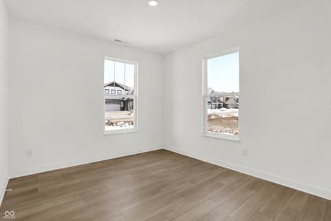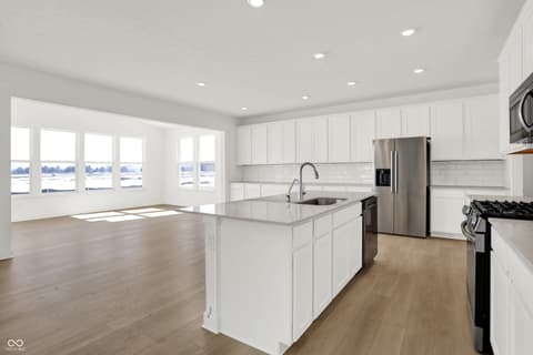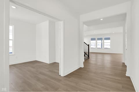 The Cornerstone collection offers some of the largest single-family homes at Beyer Estates, a master-planned community in Fortville, IN. Built to inspire outdoor living, this community offers over 10 acres of common space, featuring trails, a central park, playground and picnic shelter. Situated near vibrant Indianapolis, Fortville provides a serene Midwestern atmosphere with close proximity to excellent recreation sites and upscale shopping at Hamilton Town Center. Flat Fork Creek Park and Geist Reservoir offer year-round activities like hiking, mountain biking, kayaking, fishing and boating. This two-story home includes a spacious open floorplan between the living room, dining room and kitchen on the first floor. The first level is also host to a convenient study located off the foyer and a bedroom with a walk-in closet that could be used as a guest space or a den. Don't miss the light filled morning room! Upstairs, the second floor is occupied by four bedrooms, including the owner's suite, and a loft. A 3 car garage adds extra storage. *Photos/Tour of model may show features not selected in home.