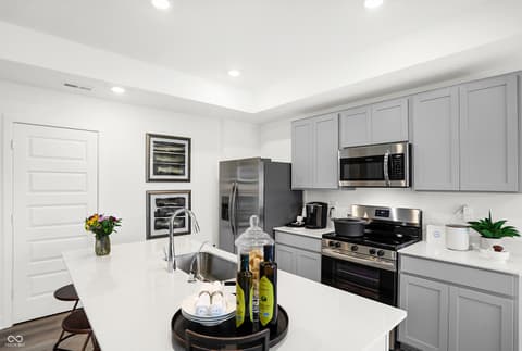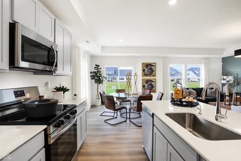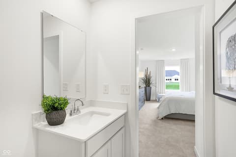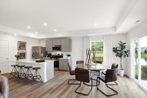 The Carriage Duplex collection offers new duplex-style homes for sale at a great value, to the Beyer Estates masterplan in Fortville, IN. Built to inspire outdoor living, this community offers over 10 acres of common space, featuring trails, a central park, playground and picnic shelter. Situated near vibrant Indianapolis, Fortville provides a serene Midwestern atmosphere with close proximity to excellent recreation sites and upscale shopping at Hamilton Town Center. Flat Fork Creek Park and Geist Reservoir offer year-round activities like hiking, mountain biking, kayaking, fishing and boating. This new home design is laid out on a single level, offering ease of living and ample space for both relaxation and entertainment. The expansive Great Room serves as the heart of the home, seamlessly connecting to a modern kitchen and airy dining area. At one end is the large owner's suite with an attached bathroom, while two secondary bedrooms sit at the opposite end. Rounding out the space is a versatile two-car garage. *Photos/Tour of model may show features not selected in home.